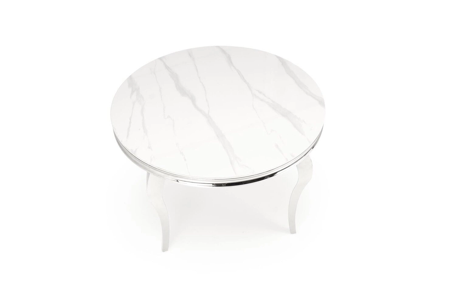 - Kulatá skleněná deska 120 cm – zajišťuje rovný přístup pro všechny a podporuje společné stolování