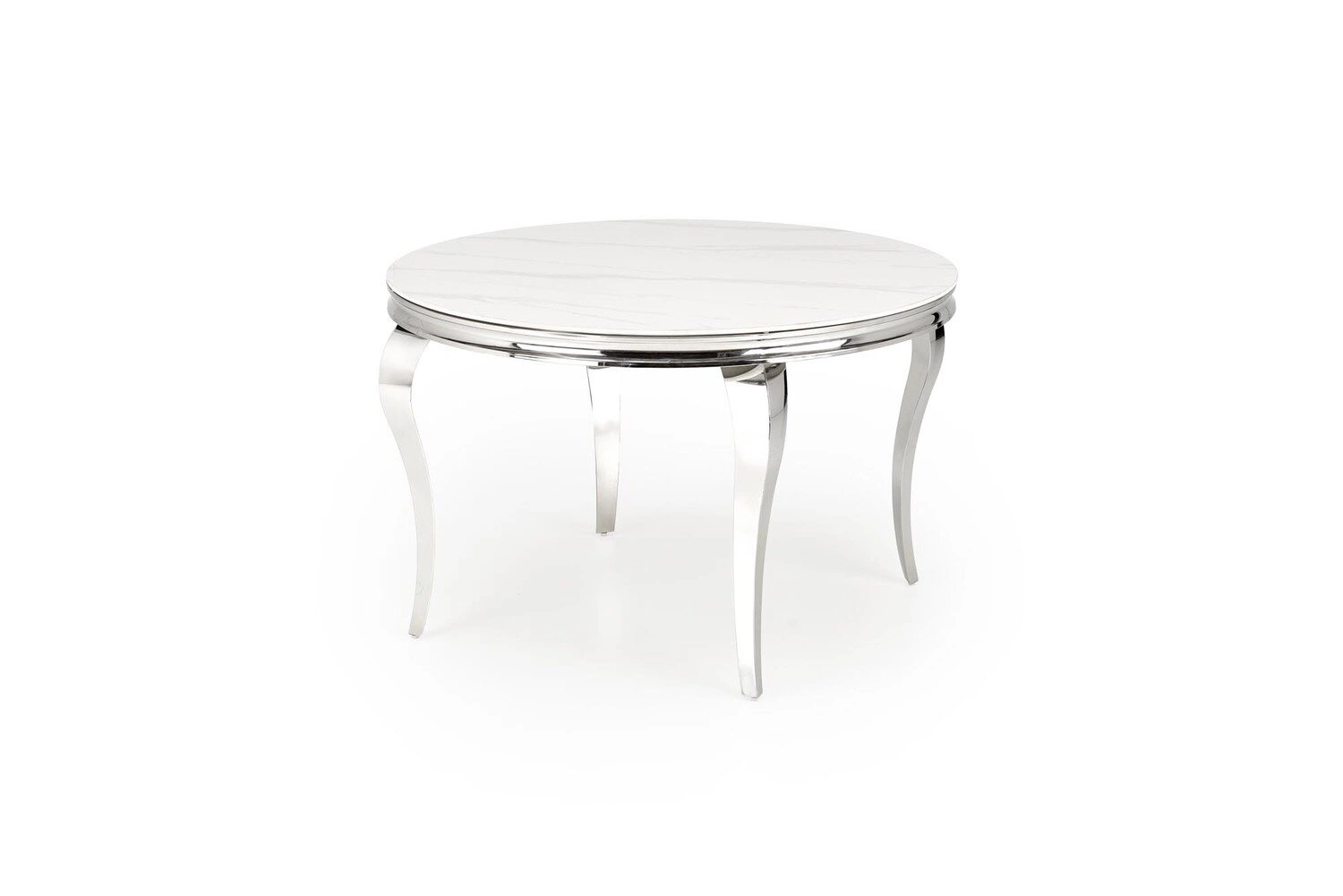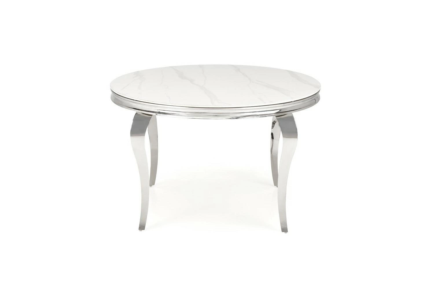 Stůl Munya je esencí glamour stylu – jeho bílá skleněná deska nádherně odráží světlo a dodává interiéru vzdušnost i luxusní vzhled. Stříbrná, lesklá podnož na čtyřech štíhlých nohách zajišťuje nejen stabilitu konstrukce, ale zároveň tvoří sofistikovaný dekorativní prvek. Kulatý tvar desky podporuje přátelskou atmosféru a vytváří příjemný prostor pro rozhovory při rodinných obědech nebo setkáních s přáteli.
