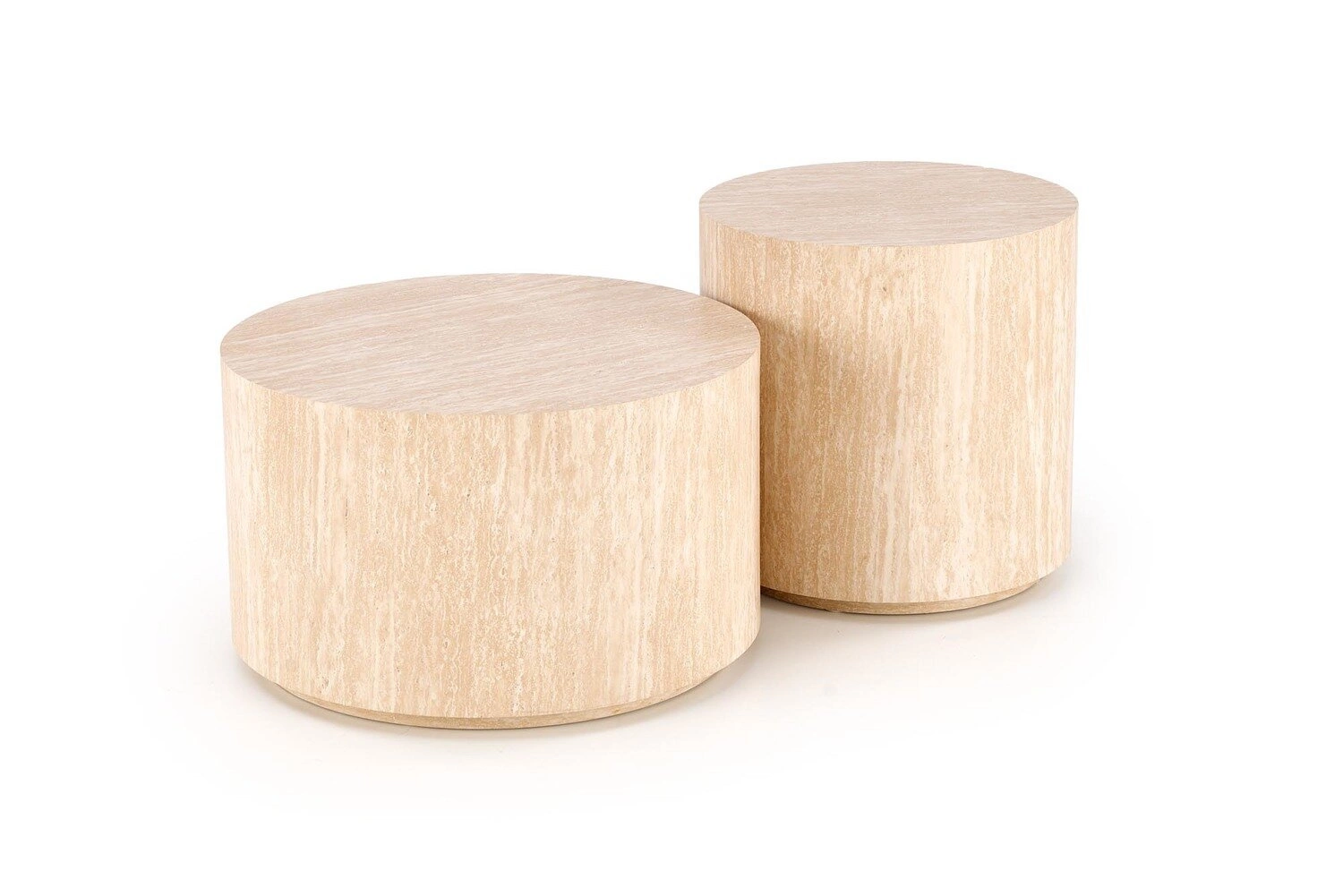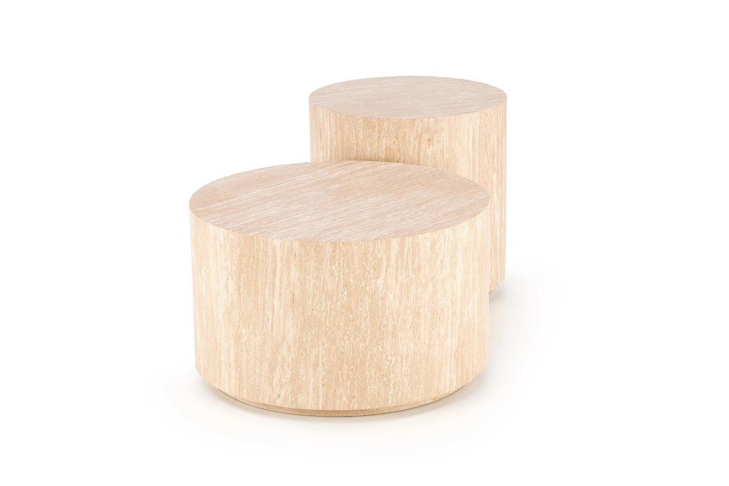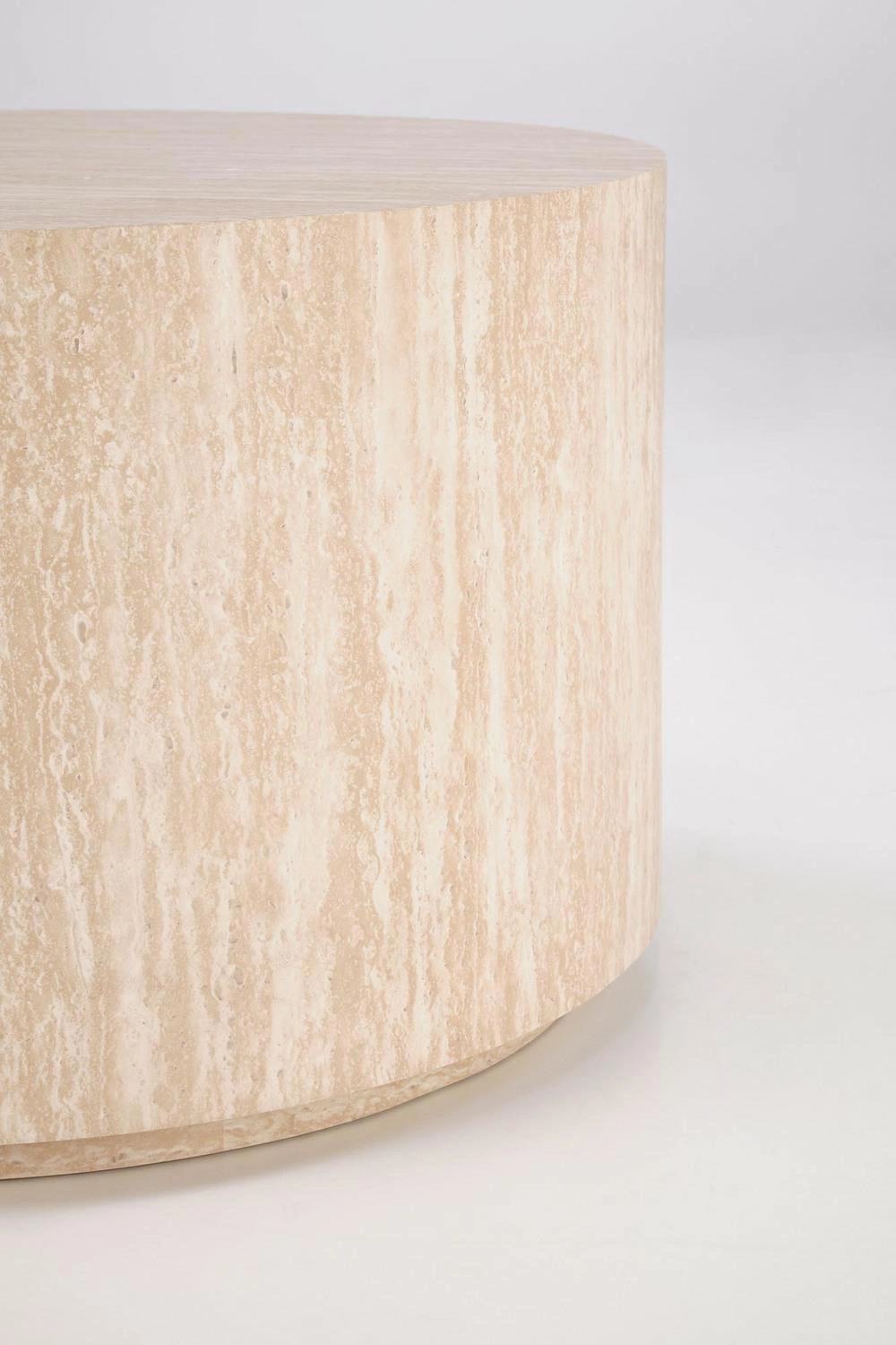 Konferenční stolek Travertino kulatý 60 cm moderní dřevěný do obýváku béžový Intesi