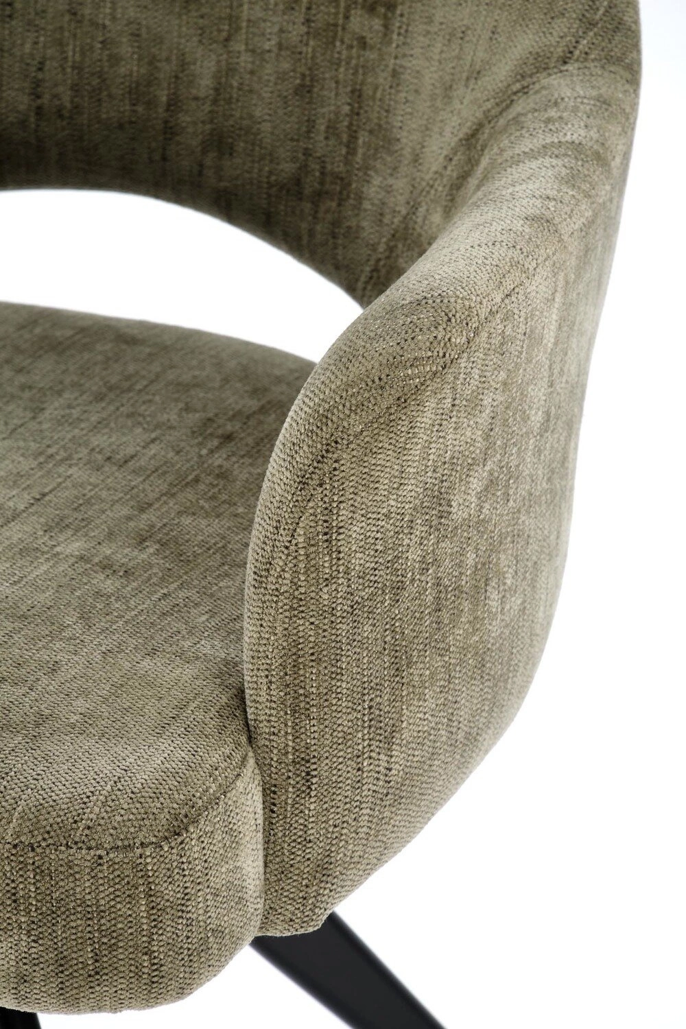 Čalouněná židle Naty v olivové barvě je určena těm, kteří ocení minimalistický design s výrazným charakterem. Jemné prošívání na sedáku, štíhlé područky a čtyři černé nohy s polomatným povrchem podtrhují moderní styl židle. Takový vzhled perfektně zapadne do interiérů zařízených ve skandinávském nebo loftovém stylu a přinese svěží barevný akcent do vašeho domova.