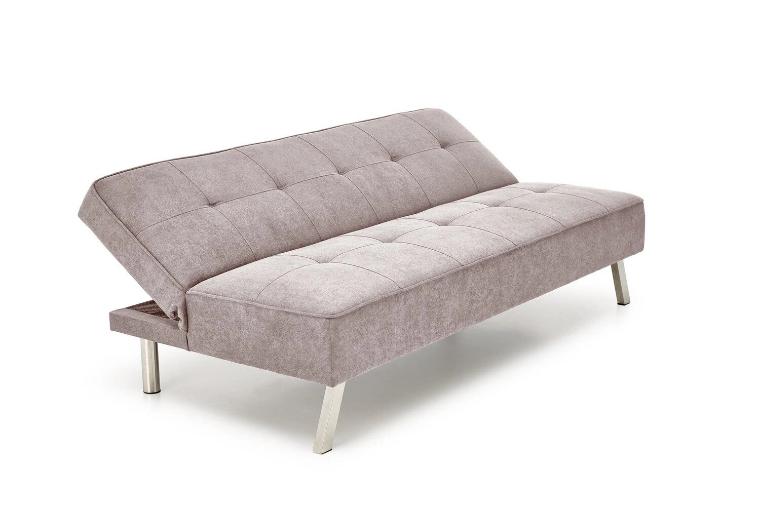 Béžová rozkládací pohovka Arhiza perfektně zapadne do moderních, minimalistických interiérů a stane se stylovým centrem každodenního odpočinku. Jednoduché linie a matná úprava látky podtrhují její nadčasový charakter, zatímco lesklé chromované nohy dodávají celku jemný, modernistický nádech. Je to ideální volba pro ty, kteří si cení harmonie, klidu a univerzálnosti zařízení – béžová barva se skvěle kombinuje jak se světlými, tak tmavšími doplňky.