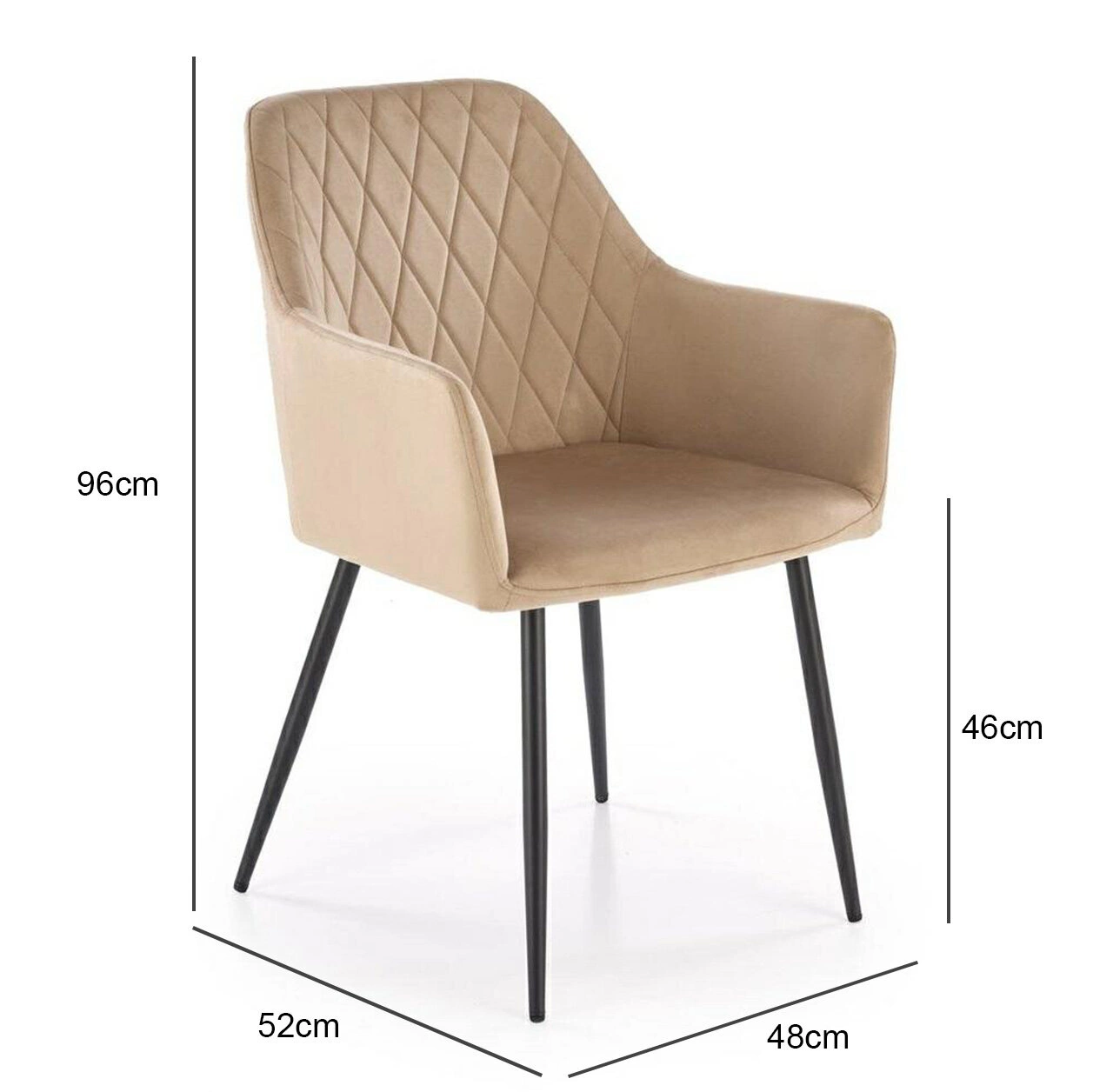 Měkká sametová látka, ze které je sedák vyroben, vybízí k odpočinku a zajišťuje, že každý okamžik u stolu nebo v obývacím pokoji bude příjemný. Výplň z čalounické pěny uvnitř poskytuje pružnost a pohodlí i během dlouhých rozhovorů nebo práce. Područky jsou tvarované tak, aby poskytly oporu pažím, což umožňuje skutečně relaxovat a užít si chvíli klidu.