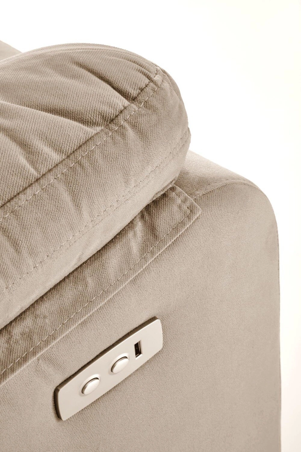 Fearne není jen o designu, ale i o praktických vylepšeních. Vestavěný USB-A port umožňuje nabíjet telefon nebo tablet přímo z křesla – ideální během dlouhých večerů u oblíbeného seriálu. Vysoké opěradlo (105 cm) poskytuje správnou oporu zádům a široké područky přispívají k pohodlné relaxaci. Stabilní konstrukce unese až 120 kg, což zaručuje bezpečné používání.