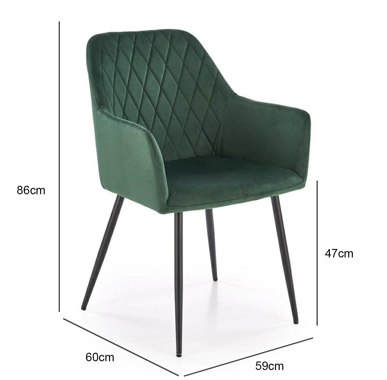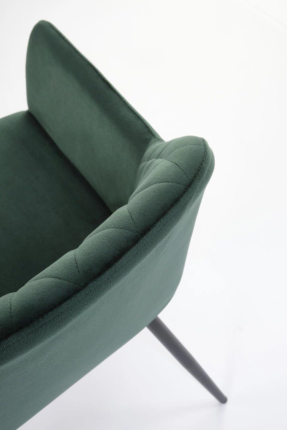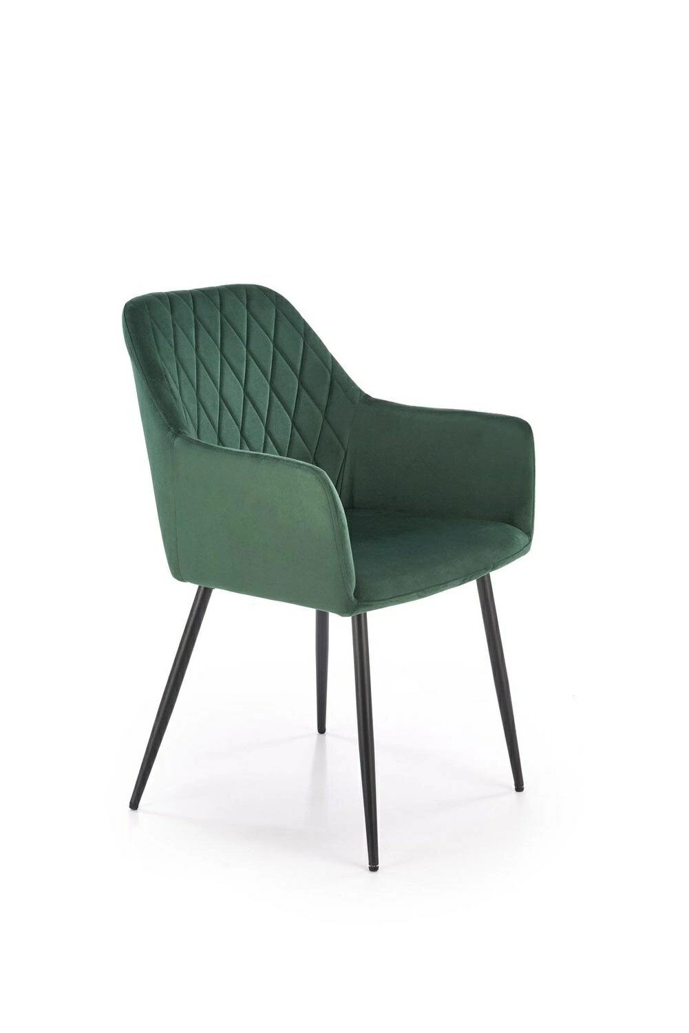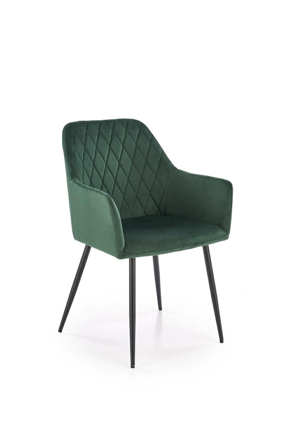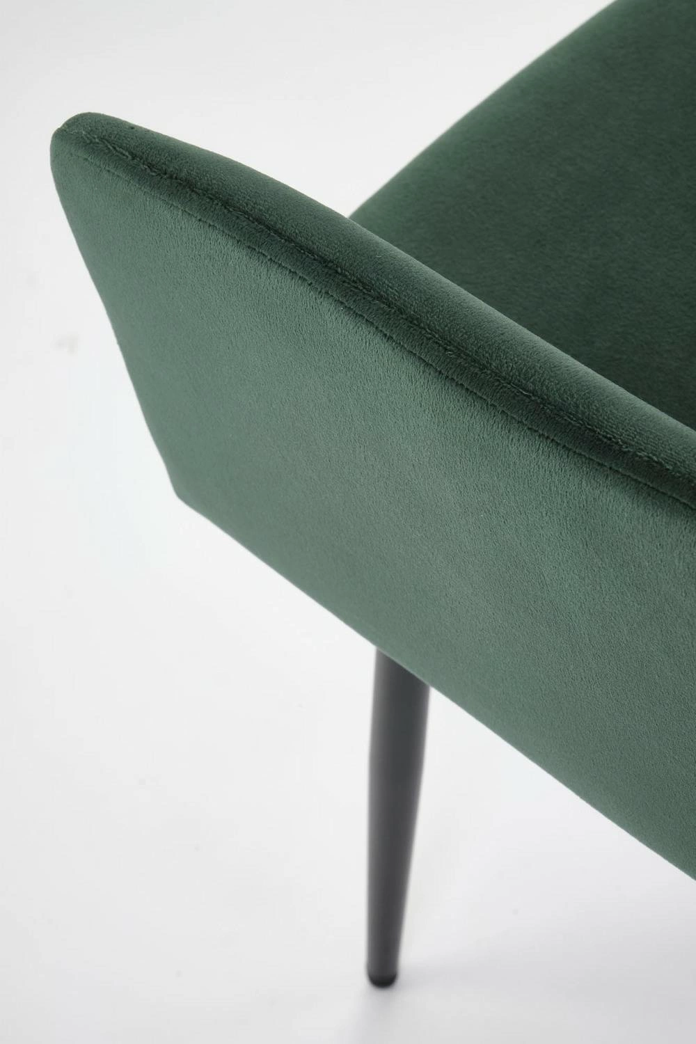 Měkké sametové čalounění v trendy lahvově zelené barvě nejen upoutá pozornost, ale také poskytuje jedinečně příjemný dotek. Výplň ze silné čalounické pěny v sedáku zaručuje pohodlí i při delším sezení u stolu nebo při práci v domácí kanceláři. Tento model ocení jak milovníci moderního stylu, tak i ti, kteří hledají praktickou a zároveň stylovou židli do obývacího pokoje nebo kuchyně.
