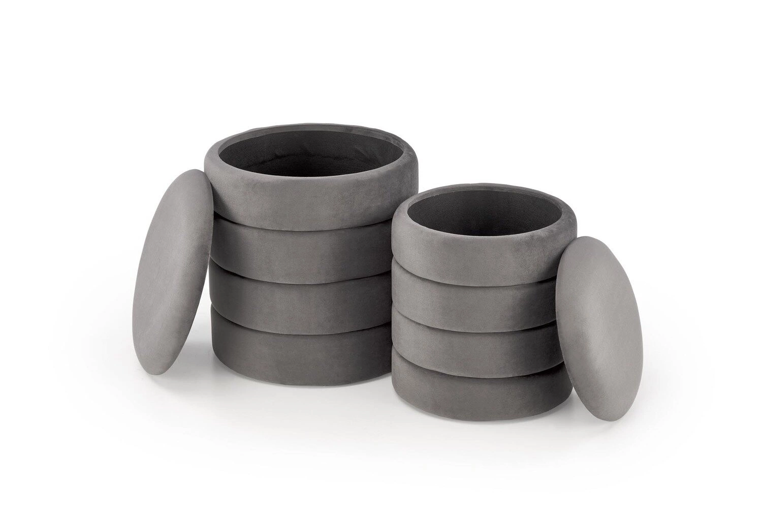 Představujeme vám sadu dvou elegantních pufů Gabael v barvě popela. Jsou vyrobeny z měkké, na dotek příjemné sametové tkaniny, která jim dodává luxusní vzhled. taburet Výška většího z nich je 44 cm a výška menšího 33 cm, takže je mohou pohodlně používat dospělí i děti. Oba pufy jsou navíc vybaveny úložnými prostory, takže jsou nejen stylovým, ale také praktickým designovým prvkem do každé místnosti.