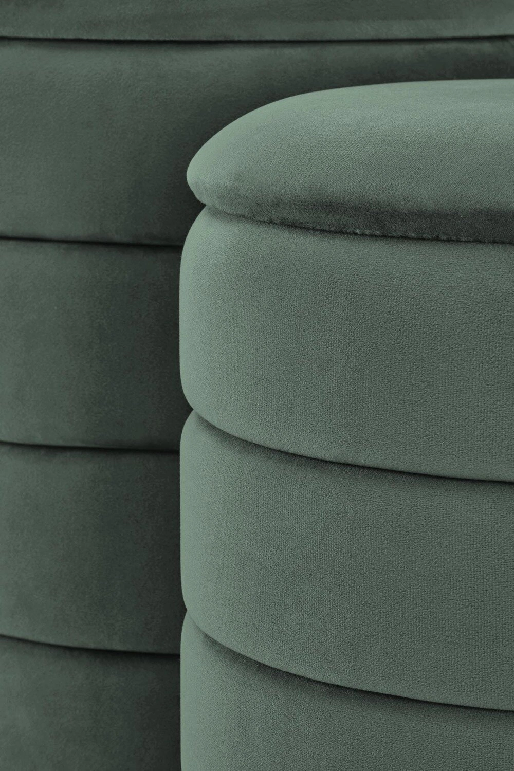 Sada 2 taburetů Gabael od značky Intesi spojuje glamour styl s praktičností – kulaté taburety v odstínu lahvově zelené, čalouněné jemnou sametovou látkou a vybavené praktickým úložným prostorem. Výška 44 cm a průměr 40 cm z nich dělají elegantní doplněk do obývacího pokoje, ložnice nebo studentského pokoje, nabízející pohodlné sezení i místo na drobnosti.