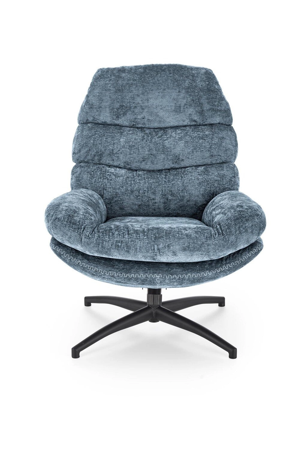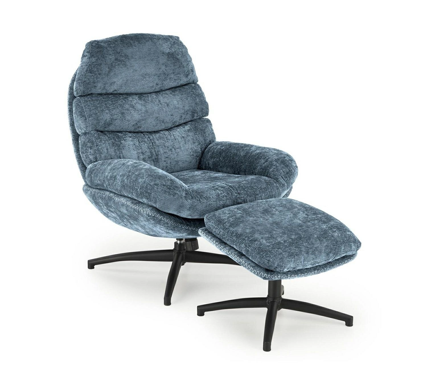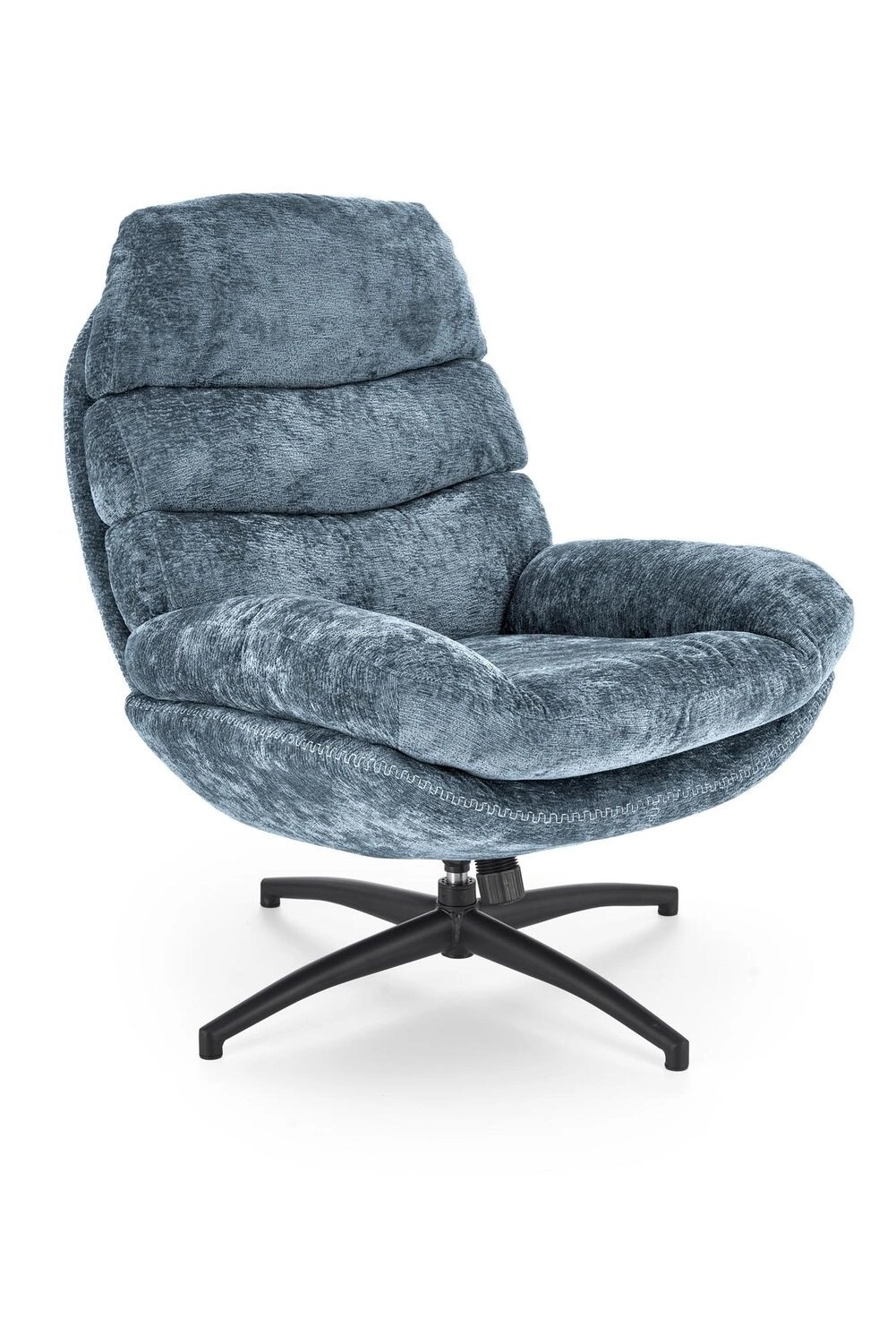 - Promyšlená barevná kombinace – modré křeslo s černými detaily je stylovou volbou do světlých i neutrálních interiérů