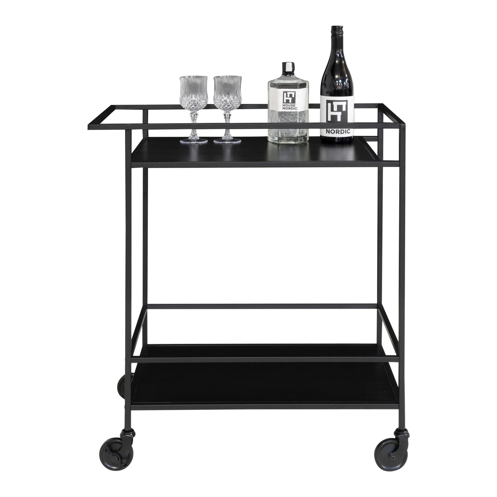 Intesi Vita je kovový barový vozík na kolečkách v loftovém stylu, navržený pro moderní interiéry. Je vyroben z robustní kovové konstrukce v hluboké černé barvě a doplněn obdélníkovou deskou z dřevotřísky, což zajišťuje spojení industriální estetiky s praktickým využitím. Výška vozíku činí 79 cm a umožňuje pohodlný přístup při servírování nápojů, pochutin nebo dezertů v obývacím pokoji i kuchyni.