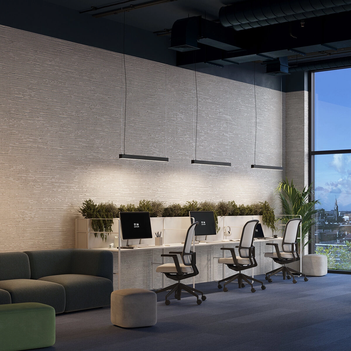 Díky integrovanému LED modulu s neutrálním světlem 4000K nabízí PINNE 200 osvětlení podobné dennímu, které podporuje soustředění i relaxaci. Vysoký výkon 6500 lumenů zajišťuje, že svítidlo spolehlivě rozjasní i větší místnosti – skvěle se hodí jako světlo do obývacího pokoje, nad jídelní stůl, do moderní kuchyně nebo kancelářských prostor. Světlo směřující dolů krásně zvýrazní plochu stolu či ostrůvku a usnadní práci i každodenní činnosti.