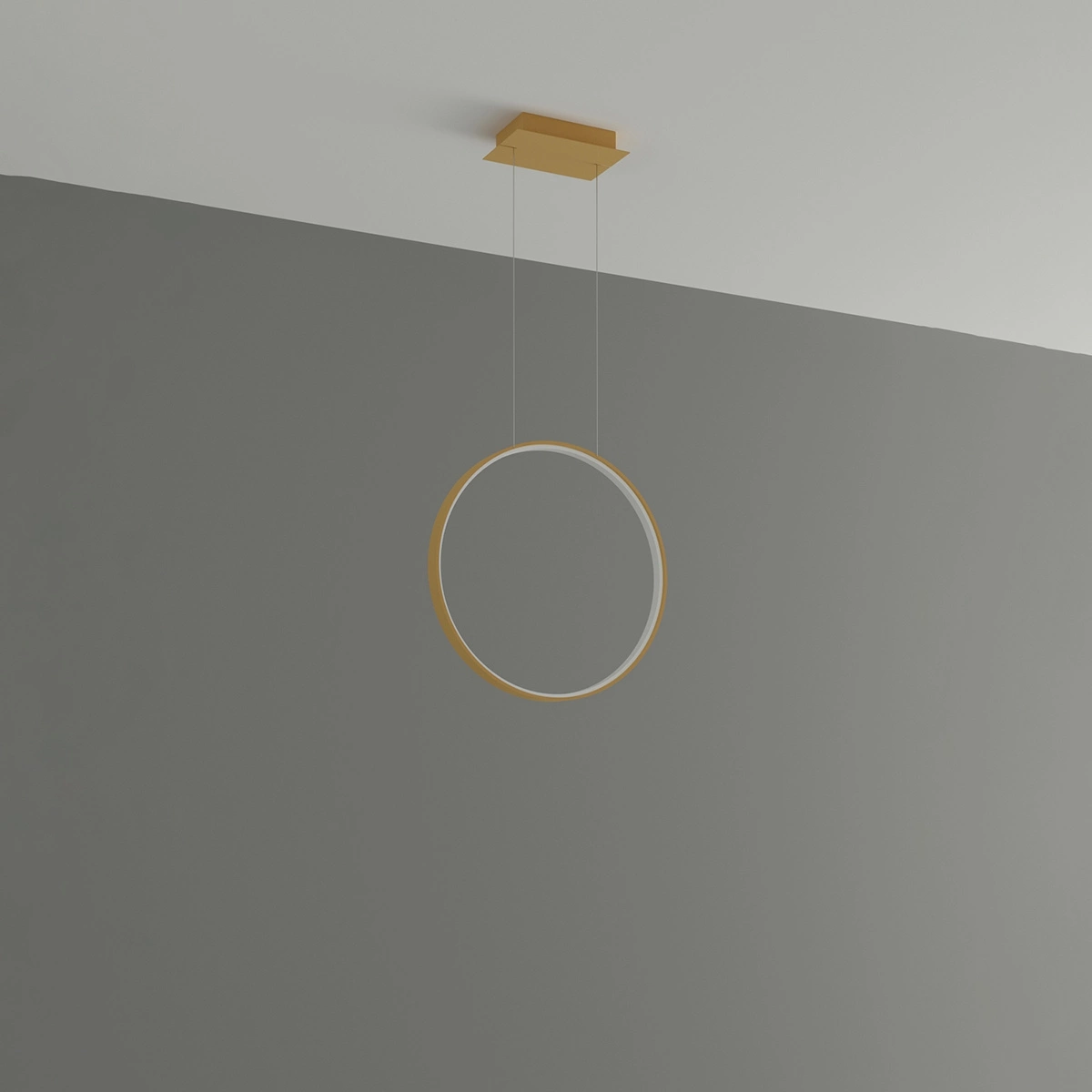 Moderní tvar svítidla RIO 55 vyniká minimalistickým prstencem s matným zlatým povrchem. Díky nadčasovému stylu se toto stropní osvětlení skvěle hodí jak do interiérů ve stylu modern classic, tak i do prostor inspirovaných glamour. Hliníková konstrukce podtrhuje prestižní vzhled lampy a zároveň zajišťuje odolnost i snadnou instalaci.