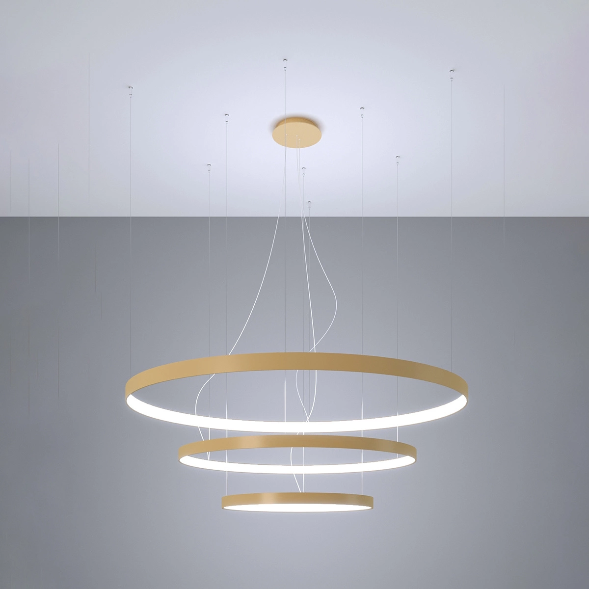 Kombinace geometrického tvaru a prvotřídního zpracování dělá z LED lustru RIO 3 středobod každé místnosti. Zlaté provedení jemně podtrhuje moderní styl a vnáší do interiéru nádech luxusu. Minimalistický, ale zároveň výrazný charakter lampy vynikne jak ve vzdušných obývacích pokojích, tak v elegantních jídelnách nebo otevřených kuchyních propojených s obývací zónou.
