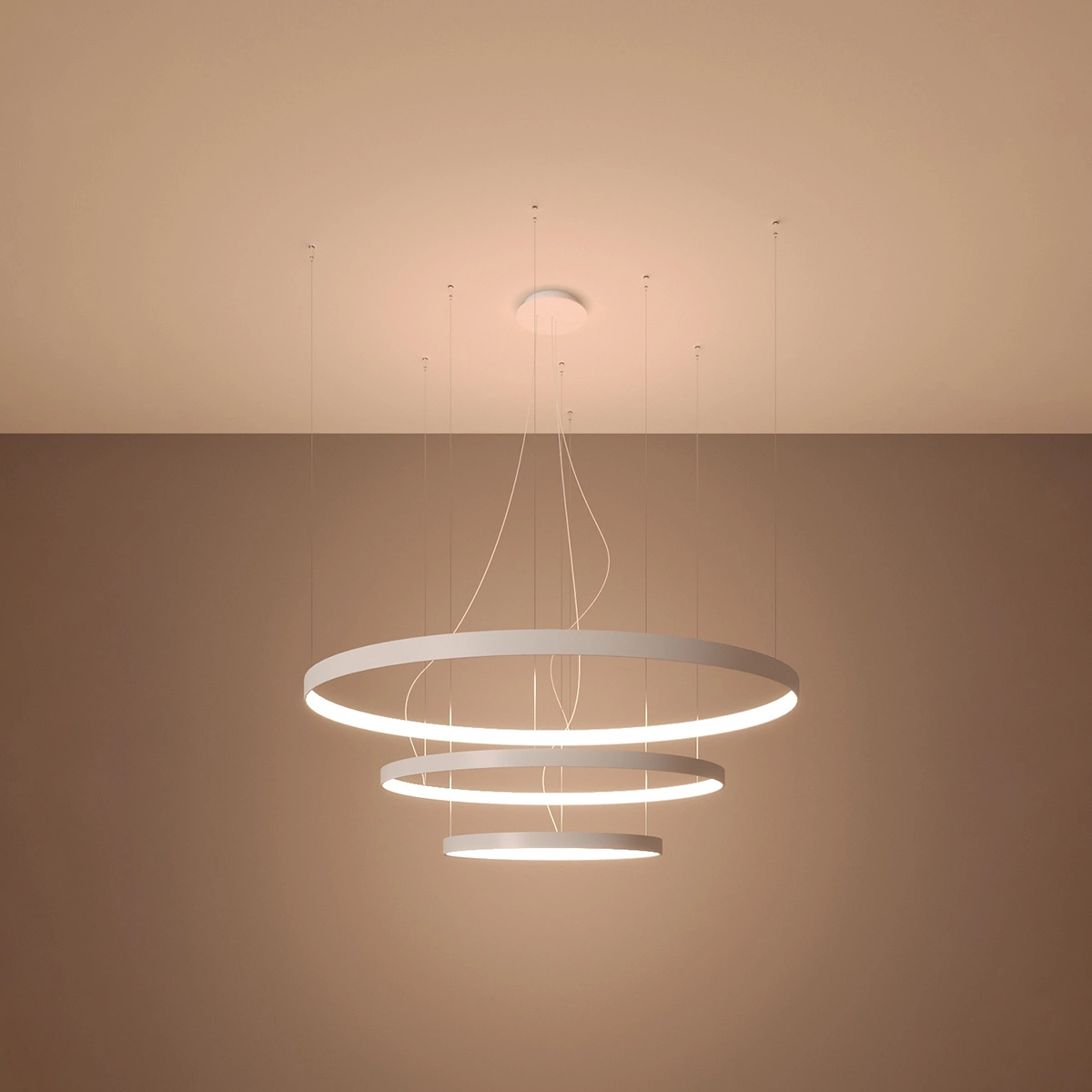 RIO zaujme svou všestranností. stropní svítidlo Lustr (jednoduchý dvojitý nebo trojitý) a jsou jeho klasičtější verze. Naopak uměleckou variací na téma RIO je vertikální závěsné svítidlo, které nabízí nekonečné možnosti designu jak v soukromých prostorách, jako je hala, obývací pokoj, šatna nebo koupelna, tak v elegantních veřejných prostorách, jako je wellness centrum, lázeňský salon, galerie, butik, restaurace nebo kancelář.sk.Svítidla v podobě moderních LED kruhů zaručují vysokou estetiku a vynikající parametry svítivosti (3000K CRI 90, 4000K CRI 95) Vysoký počet lumenů v zinte owanym zdroji světla typu LED). Estetický vzhled svítidel je dán také rozměry profilu, které jsou: výška 40 mm, šířka 8 mm. Stejně jako u všech našich svítidel jsou kroužky kompletně vyráběny v Polsku, takže zaručujeme rychlé vyřízení objednávky.