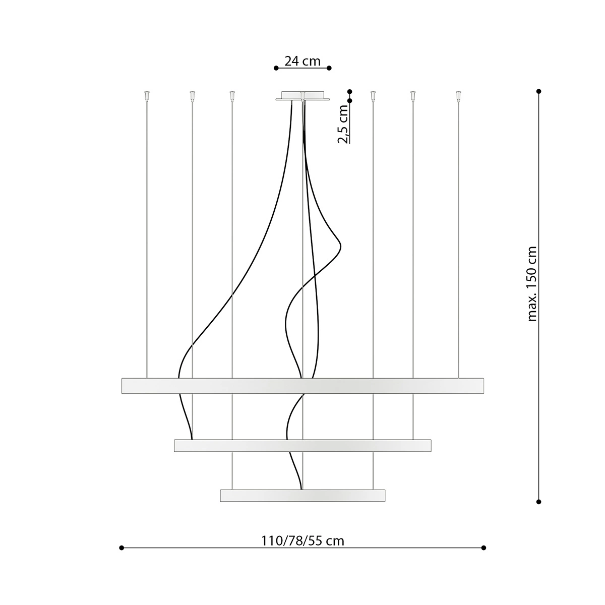 RIO 3 je LED lustr, který díky rozptýlenému světlu rovnoměrně osvětluje celý prostor, eliminuje ostré stíny a vytváří příjemnou atmosféru pro odpočinek i rodinná setkání. Teplé světlo o hodnotě 3000K je šetrné pro oči, a integrovaný LED zdroj s výkonem 150W a působivým světelným tokem 17 210 lumenů zajistí optimální jas i ve větších místnostech. Lustr je tak ideální volbou nad jídelní stůl, do obývacího pokoje nebo moderní kuchyně jako hlavní osvětlení.