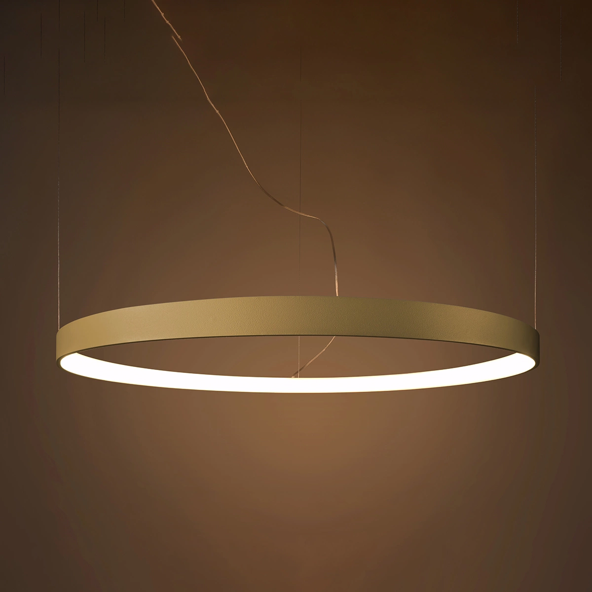LED lustr RIO 78 značky Thoro je moderní stropní svítidlo v elegantní zlaté barvě, vyrobené z pevného hliníku. Se šířkou 78 cm a výškou až 150 cm tento model zaujme nejen originálním designem, ale také funkčností – nabízí rozptýlené, teplé LED světlo (3000K, 5520 lumenů), které skvěle osvítí obývací pokoj, jídelnu nebo kuchyň. Integrovaný světelný zdroj o výkonu 50W poskytuje pohodlné osvětlení, zatímco transparentní kabel dodává svítidlu lehkost a jemnost.