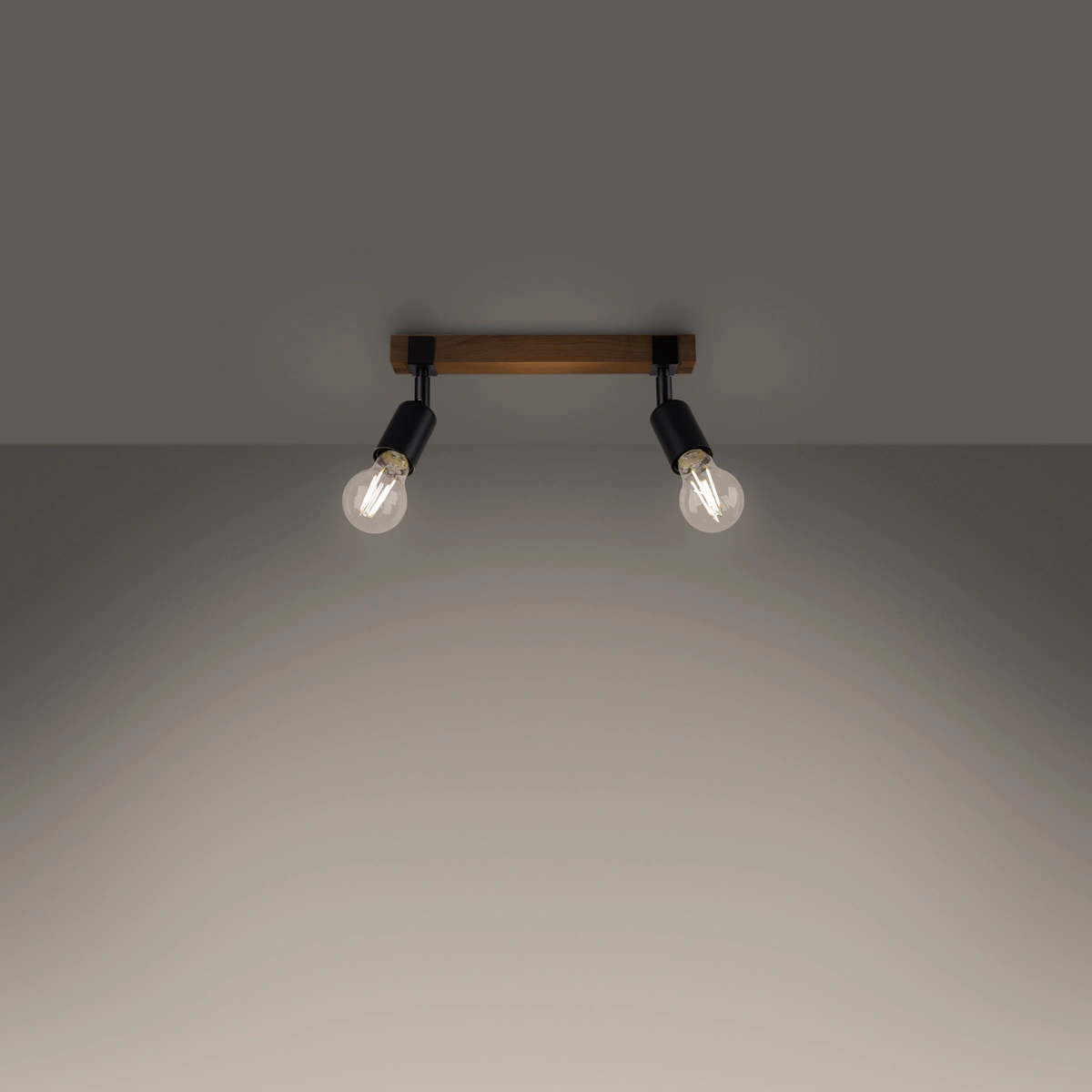 Stropní svítidlo ZUCA 2 černé s dřevem od značky SOLLUX LIGHTING je ideální volbou pro milovníky moderního designu, kteří oceňují funkčnost a originální kombinace materiálů. Tento model je vyroben z odolného kovu v hlubokém, matném odstínu černé, který doplňuje stropní základna z přírodního dřeva – celek tak získává jedinečný charakter. Plafon je vybaven dvěma nastavitelnými světelnými body s paticí E27, díky nimž snadno přizpůsobíte směr světla svým potřebám. Rozměry 38 × 15 × 14 cm zajišťují, že se skvěle hodí do obývacího pokoje, kuchyně, jídelny, ložnice i domácí kanceláře.