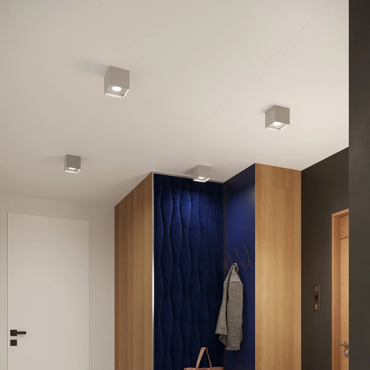 Šedý plafon HATI byl navržen pro milovníky jednoduchosti a moderní elegance. Jeho kompaktní čtvercové tělo nenarušuje celkový vzhled místnosti a jemný odstín šedi se dokonale hodí jak k světlým, tak tmavým barvám stěn. Je to ideální volba do minimalistických interiérů, kde je důležitá funkčnost a nadčasový vzhled.