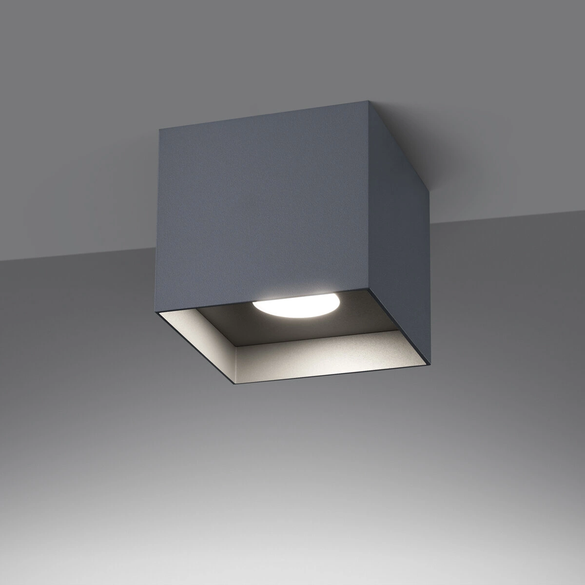 Stropní svítidlo HATI od značky SOLLUX LIGHTING je šedá, minimalistická stropní lampa vyrobená z odolného hliníku. Její geometrický tvar o rozměrech 12 × 12 × 11 cm a precizní matný povrch dokonale podtrhují moderní charakter interiéru. Tento bodový stropní plafon určený pro žárovku GU10 (max. 10W, žárovka není součástí balení) vyzařuje světlo směrem dolů a zajišťuje příjemné zónové osvětlení v obývacím pokoji, ložnici, kuchyni, jídelně, pracovně nebo na chodbě.