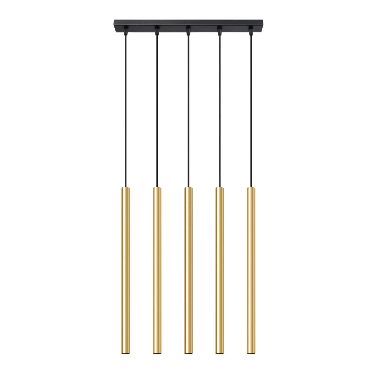Stropní svítidlo Pastelo 5L v elegantní zlaté barvě je určeno těm, kteří si potrpí na nadčasový design a dotek luxusu. Jeho minimalistický, lineární tvar vynikne v moderních prostorech a stane se jemnou, ale výraznou ozdobou. Kovová konstrukce zajišťuje pevnost a stabilitu, zatímco černé detaily (kabel a stropní krytka) přinášejí módní kontrast, který doladí jak světlé, tak tmavší místnosti.