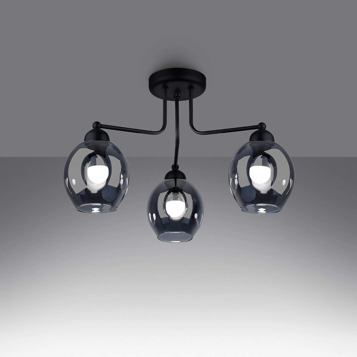Skleněný lustr FILLAN 3 od značky SOLLUX LIGHTING je moderní stropní svítidlo o průměru 54 cm, které spojuje transparentní stínidla s elegantní černou barvou kovu. Tři skleněné koule efektně rozptylují světlo a vytvářejí jedinečnou atmosféru jak v obývacím pokoji, tak nad jídelním stolem nebo v kuchyni. Pevná konstrukce a snadná údržba dělají z tohoto lustru do obýváku investici na dlouhá léta.