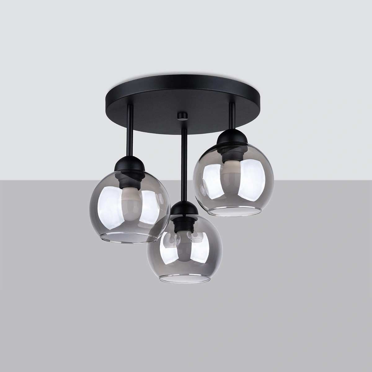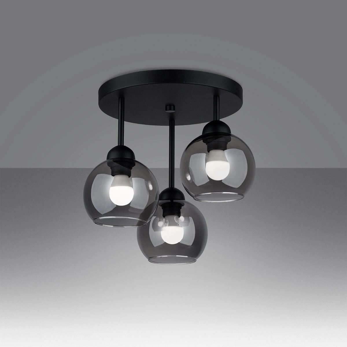 Skleněný lustr ALINO 3 černý od značky SOLLUX LIGHTING je moderní, tříbodové stropní svítidlo, které spojuje odolnost kovu s elegancí čirého skla. Díky kompaktním rozměrům 35×35×35 cm se perfektně hodí jak do obývacího pokoje, tak nad jídelní stůl nebo kuchyňský ostrůvek. Výrazná černá základna a skleněné stínidla s jemně zaoblenými tvary vytváří jedinečný světelný efekt a dodávají každému interiéru nadčasový charakter.