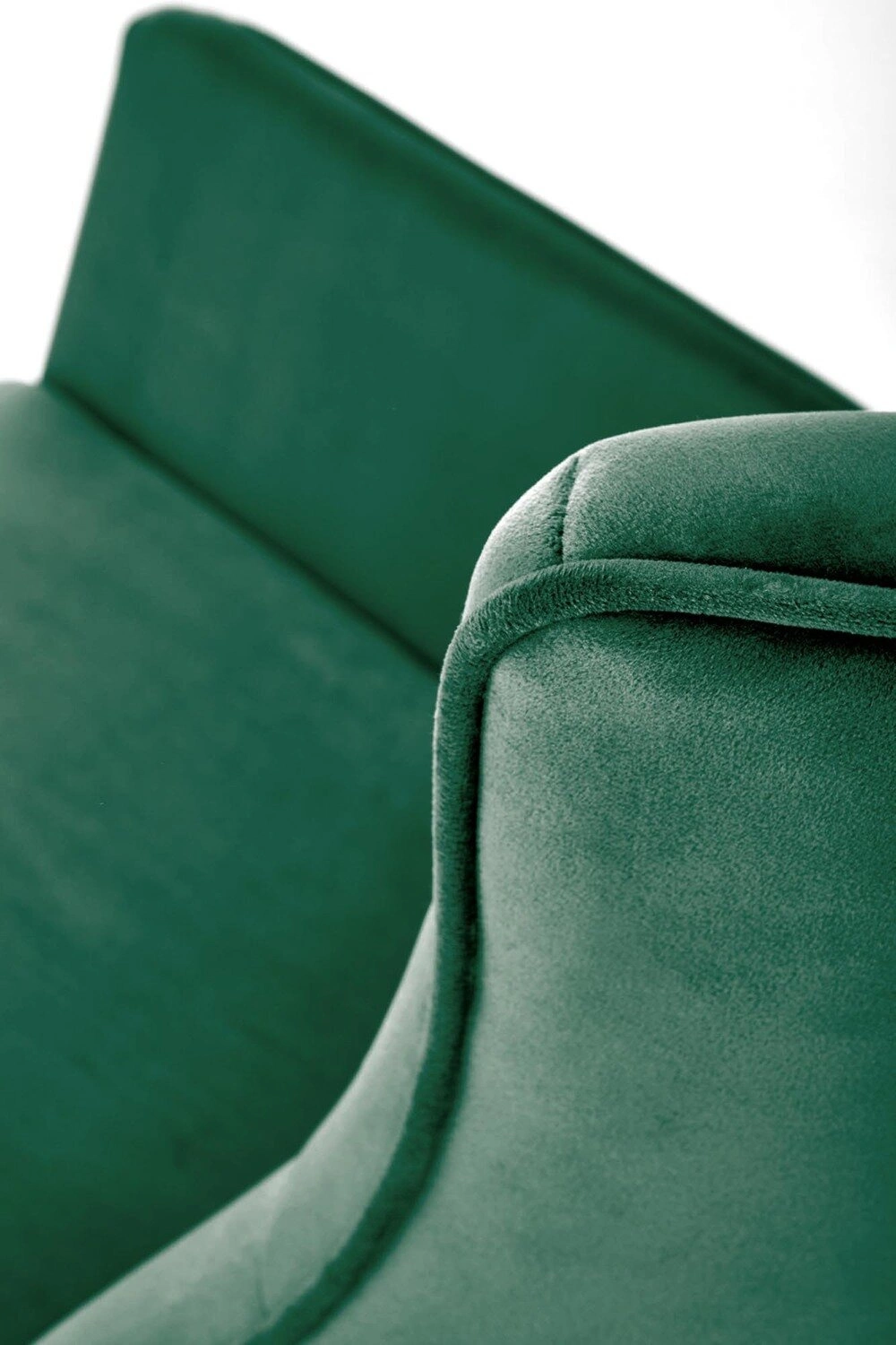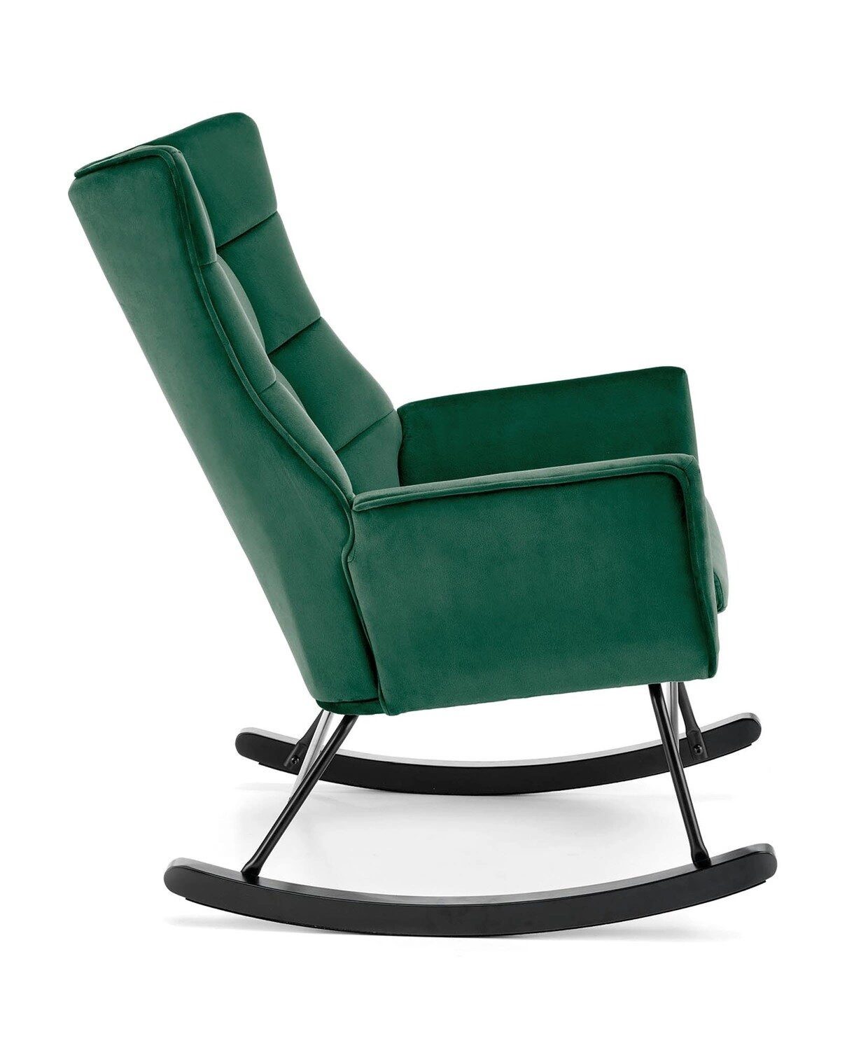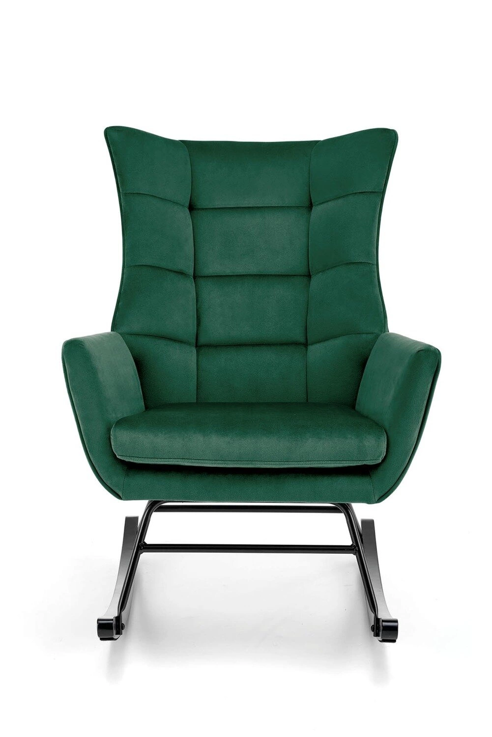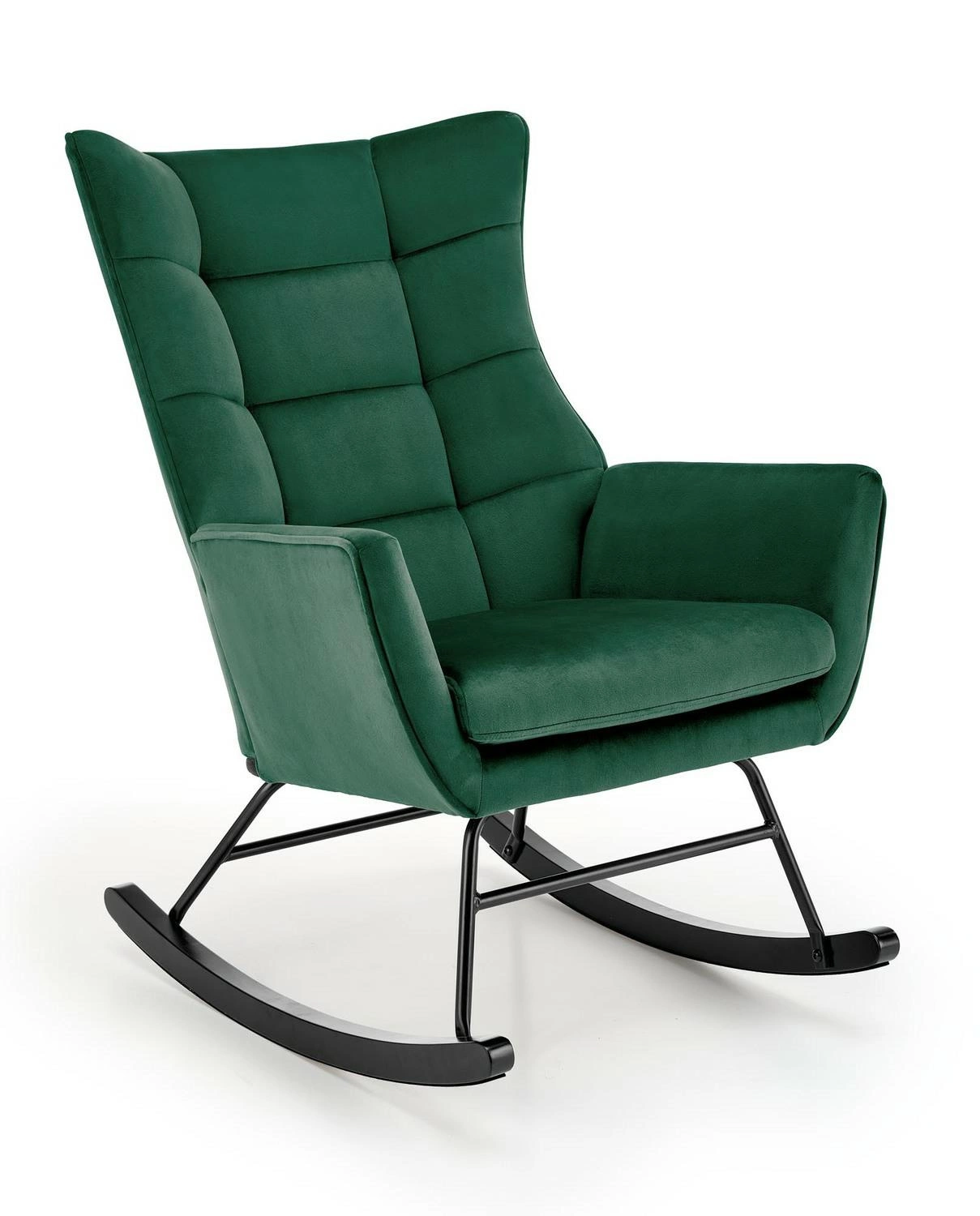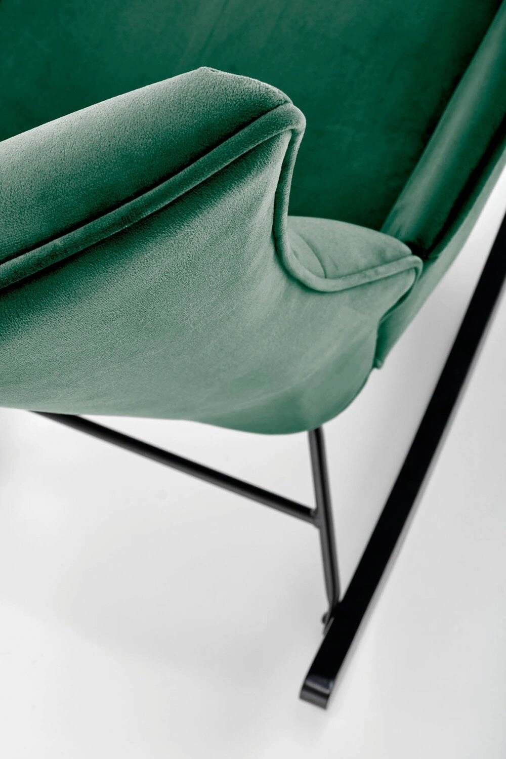 Houpací křeslo Topar od značky Intesi je výjimečné křeslo do obývacího pokoje, které spojuje moderní design, skandinávskou funkčnost a sametově hebkou velurovou látku v hluboké tmavě zelené barvě. Opěradlo i sedák jsou pečlivě tvarované pro maximální pohodlí, zatímco pevné kovové lyžiny zajišťují plynulý a uklidňující houpavý pohyb. Díky šířce 70 cm a hloubce 90 cm nabízí křeslo dostatek prostoru pro nerušený odpočinek – ať už při čtení, nebo relaxaci po práci.