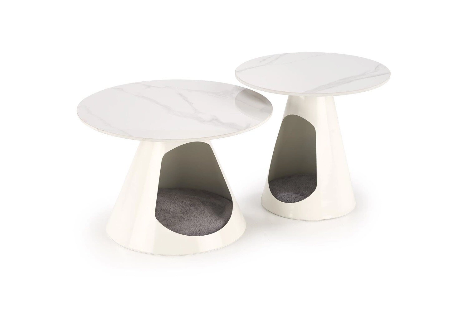 Sada 2 kulatých konferenčních stolků Mae bílý mramor Intesi – moderní design a pohodlí pro vás i vašeho mazlíčka