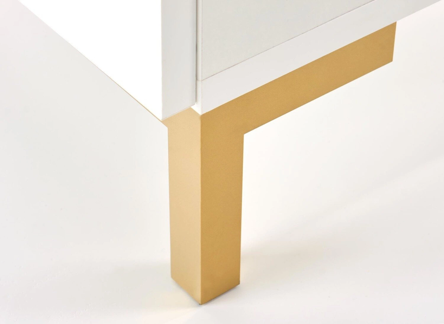 Noční stolek Tisaia zaujme nadčasovým bílým provedením, které rozzáří každý interiér a dodá mu vzdušnost. Zlaté nohy přidávají moderní eleganci a skvěle ladí se světlými interiéry i trendy dekoracemi. Díky univerzálnímu charakteru se hodí jak do klasické ložnice, tak i do pokoje pro mladé, kde podtrhne osobitý styl domácnosti.