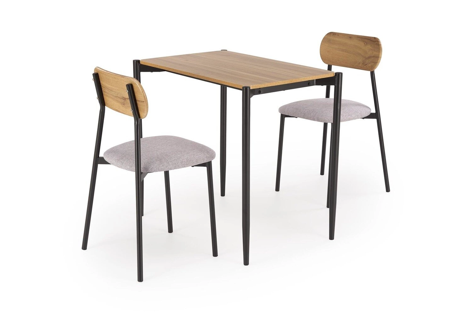 Zvu vás k objevování mimořádné harmonie a funkčnosti stolové soupravy, která se skládá z malého stolku a dvou okouzlujících židlí Maddie.Tento kompaktní stolek byl vytvořen s ohledem na malé prostory a dokonale vyhovuje potřebám současného životního stylu. Jeho minimalistický design s decentní kombinací přírodního dřeva na desce stolu a černých nohou vytváří estetickou kompozici, která snadno zapadne do každého interiéru. Díky své funkčnosti je tato souprava ideální jak do malých kuchyní, tak do útulných jídelen. rozměry: stůl 84/54/76/78 cm, židle 47/45/79/46 cm; souprava Maddie stůl + 2 židle materiál: dýhovaná nábytková deska - melamin / práškově lakovaná ocel, barva: přírodní / černá / jasan Paczka 93,00 x 64,00 x 13,00, 17,40 KG