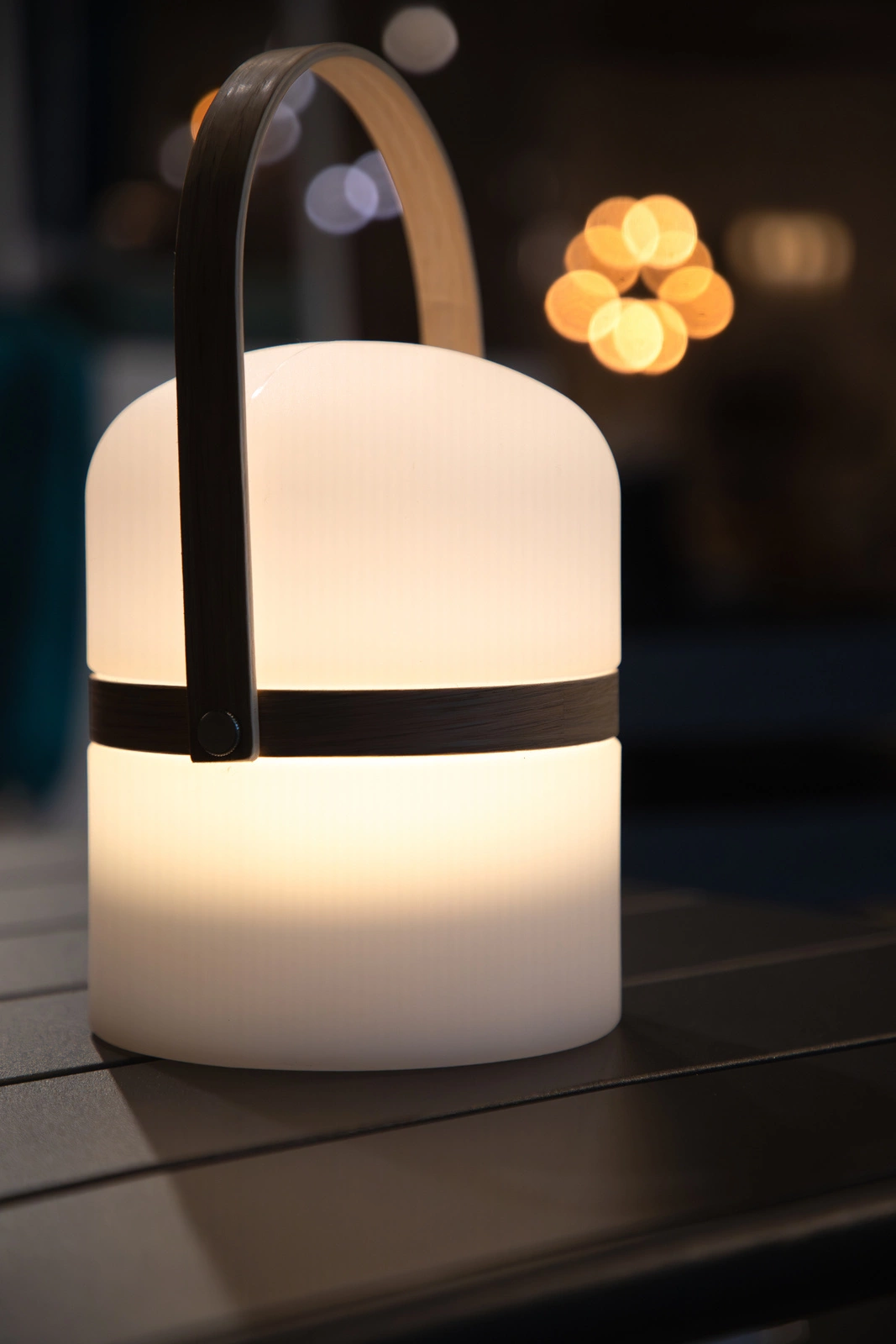• Univerzální, minimalistický design – bílá stolní LED lampa se hodí do každé zahrady, na terasu i balkon.