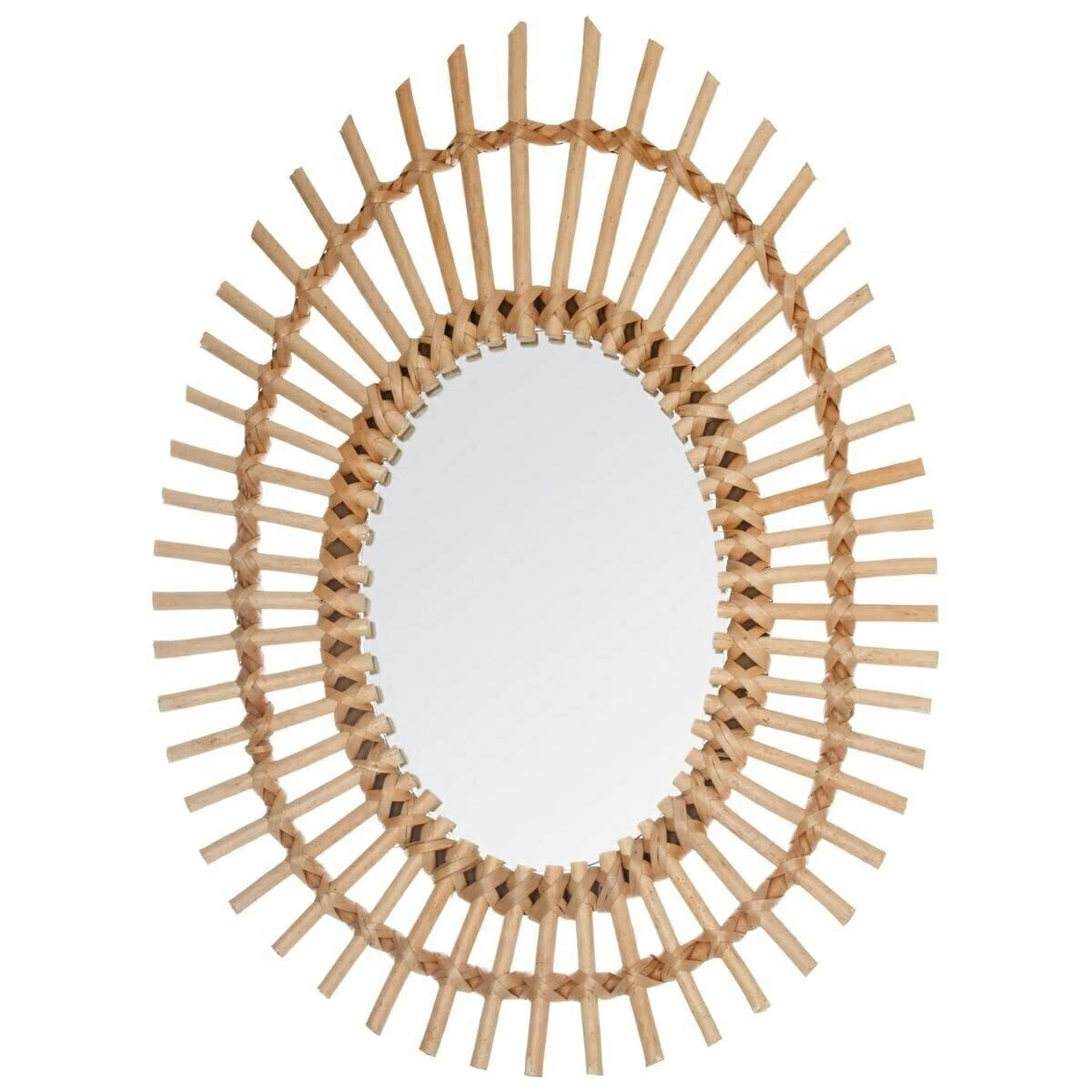 Oválné zrcadlo Irma od značky Atmosphera je dekorativní prvek v boho stylu, vyrobený z přírodního vrbového dřeva a skla. Rozměry 57,5 × 43 cm, určeno k zavěšení na zeď – ideální do obývacího pokoje nebo ložnice. Oválný tvar a výrazný, pletený rám dodávají interiéru útulnost, teplo a jedinečný charakter.
