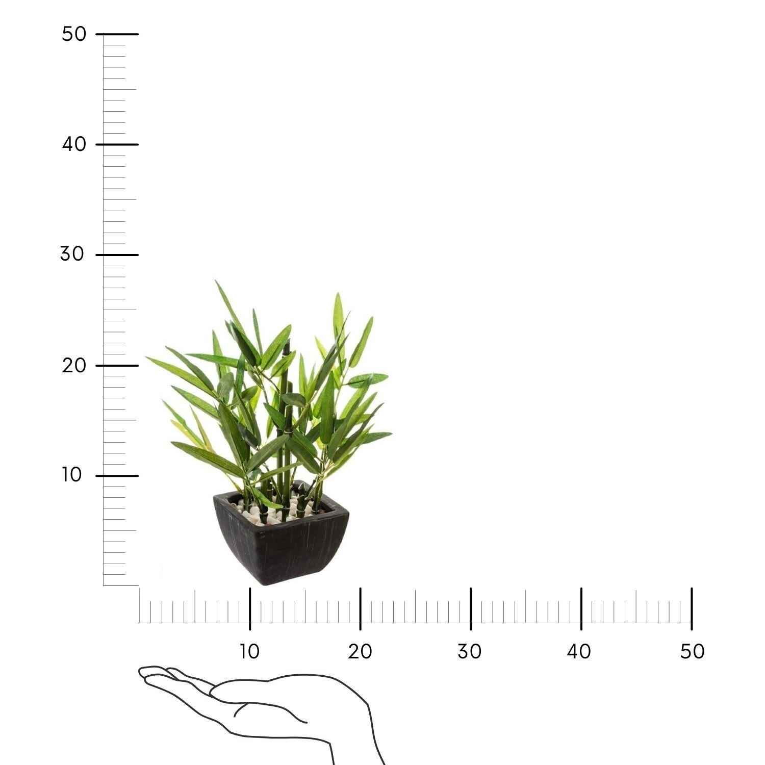 Umělý bambus Atmosphera v moderním květináči je kompaktní zelená dekorace o výšce 27,5 cm, která zaujme realistickým vzhledem a precizním zpracováním. Vyrobený z kvalitního polyetylenu, se stabilní železnou tyčí a zasazený do elegantního terakotového květináče s dekorativními kamínky, perfektně doplní obývací pokoj, kancelář, kavárnu nebo koupelnu. Ideální volba pro ty, kteří chtějí svěží zeleň bez starostí o péči o živé rostliny.