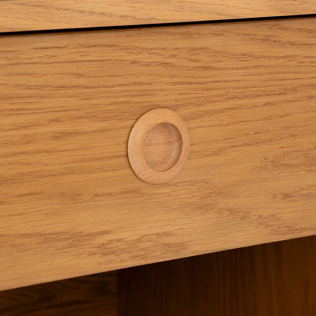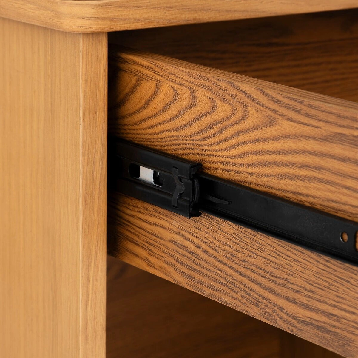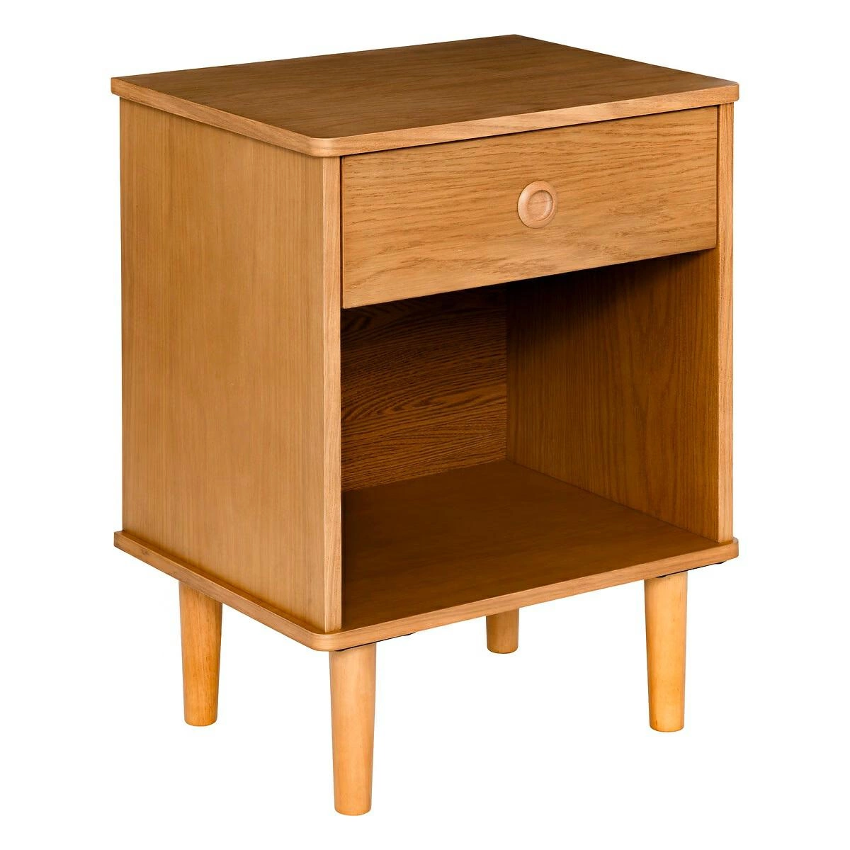 Noční stolek Charlie ve skandinávském stylu z kaučukového dřeva, přírodní dub, 44,5 cm, se zásuvkou a poličkou
