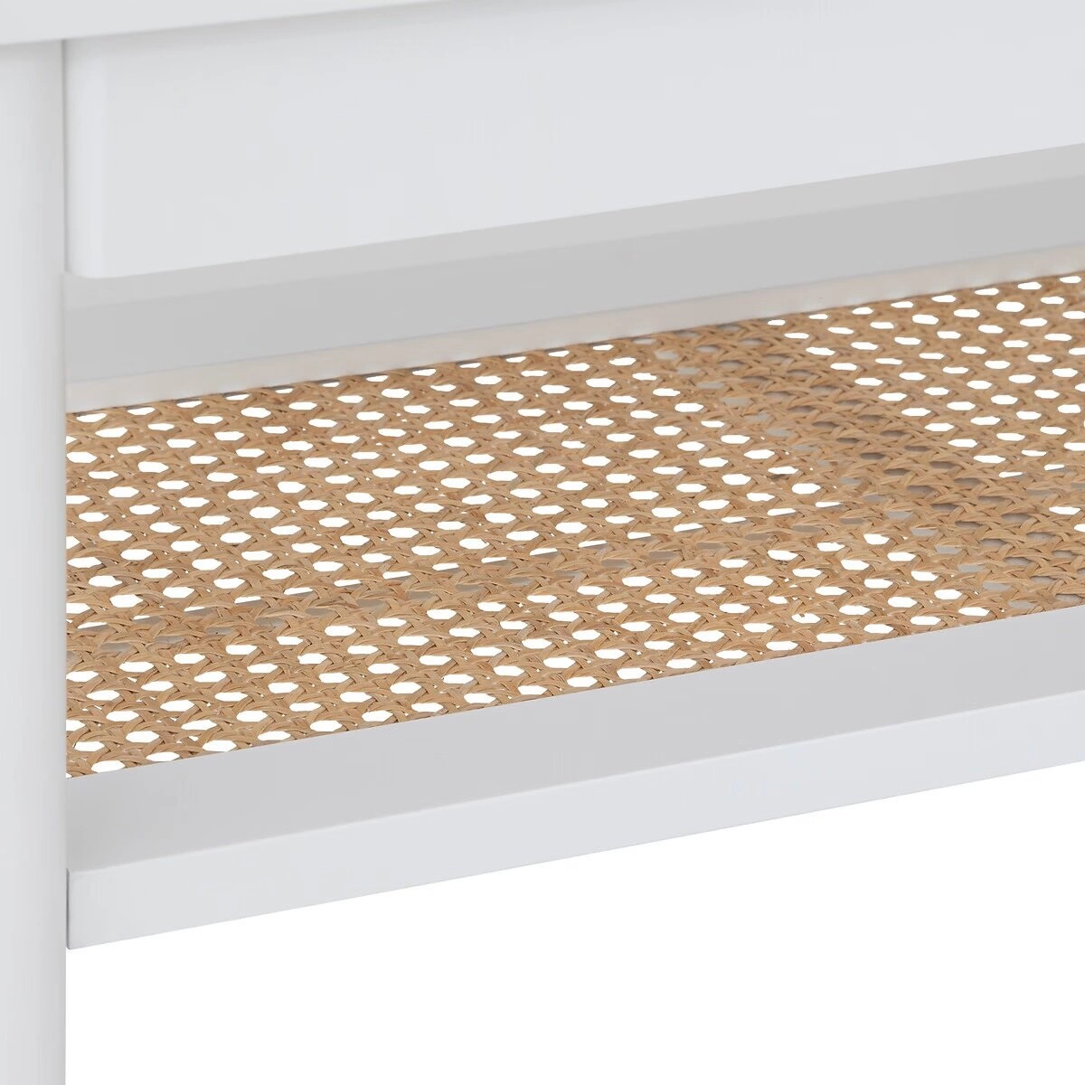 Konzolový stolek Cabras bílý od značky Atmosphera je stylový, obdélníkový konzolový stolek o šířce 110 cm, vyrobený z odolné desky a přírodního ratanu. Vyniká lehkým designem v boho stylu, praktickou policí a vysokými, štíhlými nohami, které usnadňují udržování pořádku. Je to praktická a efektní konzola do předsíně, ložnice nebo obývacího pokoje – všude tam, kde záleží na kombinaci estetiky a pohodlí při každodenním používání.