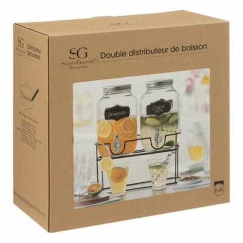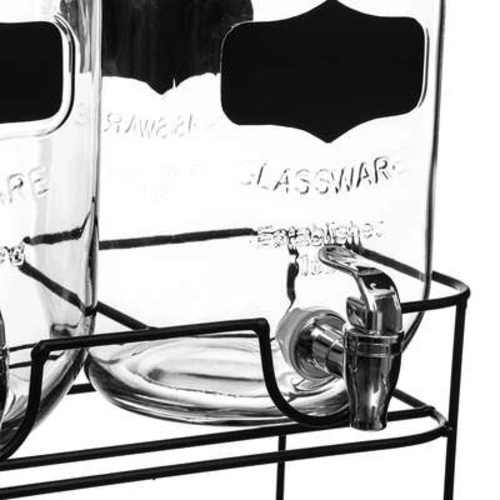 Sada 2 skleněných nádob na nápoje s kohoutkem na stojanu značky 5five simply smart je praktickým a stylovým řešením pro každého, kdo si cení pohodlí při servírování nápojů na oslavách. Každá nádoba o objemu 4 litry je vyrobena z čirého skla, zatímco pevný kovový stojan zajišťuje stabilitu a usnadňuje nalévání. Díky této sadě snadno připravíte podávání domácí limonády, vody nebo koktejlů při rodinných setkáních, grilování nebo letních zahradních párty.