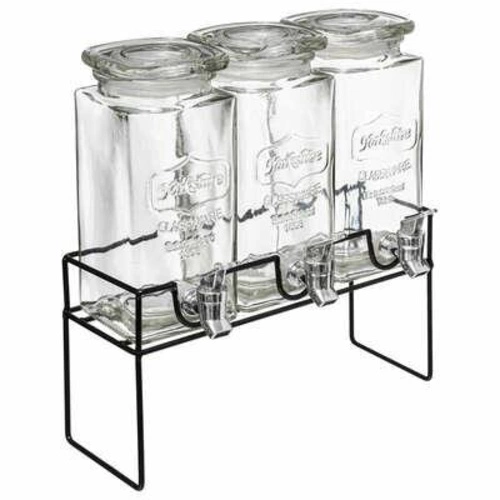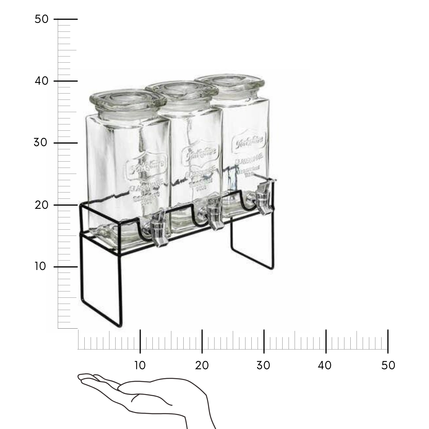 Průhledné sklo spolu s černým kovovým stojanem vnáší do interiéru moderní, minimalistický styl, který skvěle ladí s dekoracemi na stole nebo na zahradě. Stabilní základna zajišťuje bezpečnost při používání a promyšlená konstrukce umožňuje snadný přístup ke každé nádobě. Nádoby jsou opatřeny těsnícími víčky, která chrání nápoje před hmyzem a ztrátou čerstvosti – což oceníte zejména při letních posezeních na terase nebo pikniku.