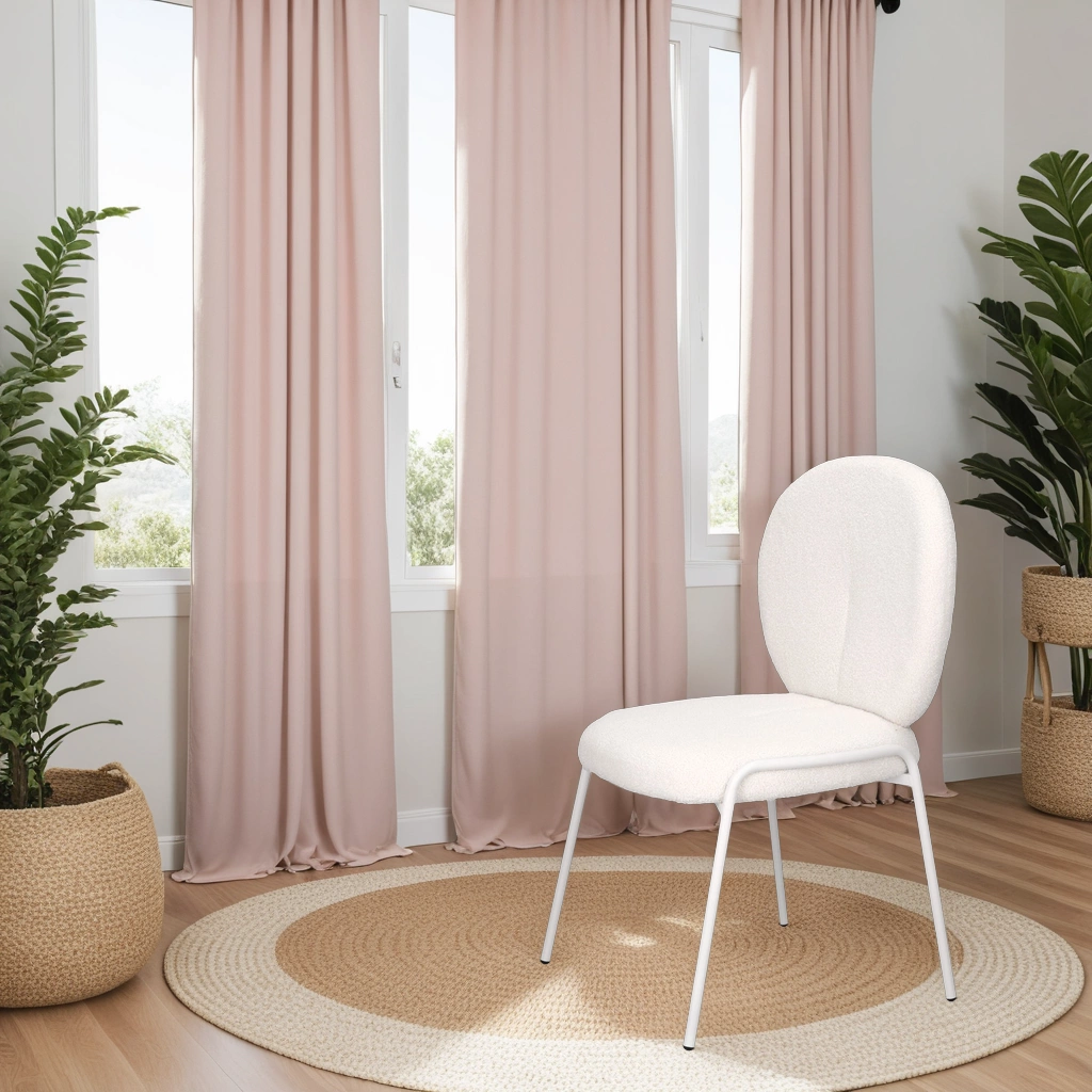 Židle Bianco čalouněná boucle bílá je určena pro ty, kteří ocení harmonii, světlost a jemnou eleganci. Její jednoduchý, ale propracovaný tvar perfektně zapadá do interiérů ve skandinávském nebo moderním stylu. Díky univerzálnímu bílému odstínu židle prosvětlí místnost a opticky ji zvětší, čímž dodá prostoru lehkost.