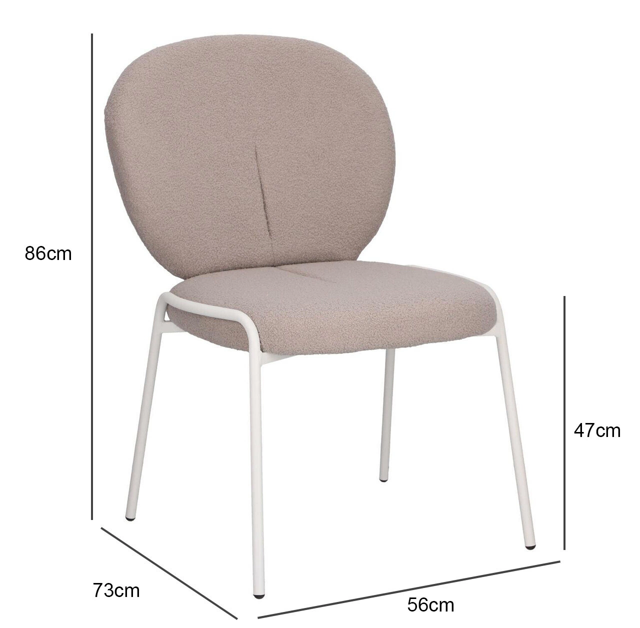 Křeslo Bianco šedé je jedinečný kus nábytku, který přinese do vašeho interiéru eleganci a pohodlí. Je čalouněný boucle látkou, která je nejen měkká, ale také stylová, což zajišťuje nepřekonatelné pohodlí při sezení. Kovové nohy lakované bílou barvou v prášku mu dodávají lehkost a moderní vzhled, který se perfektně hodí do stylu boho.