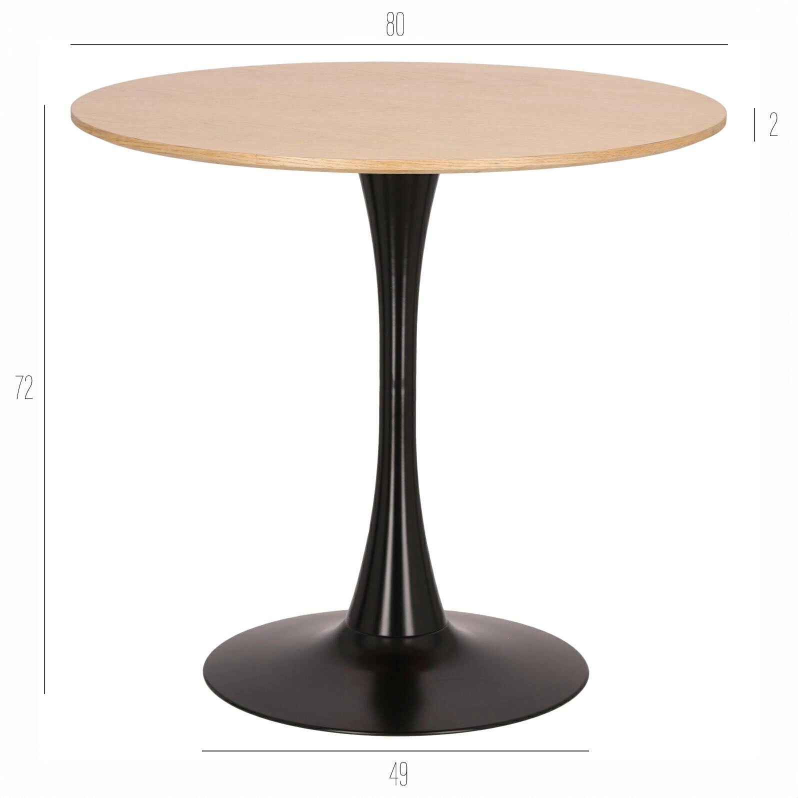 Okrúhlý jídelní stůl Simplet Skinny od značky Simplet je moderní kus nábytku o průměru 80 cm, který kombinuje skandinávský minimalismus s praktickým využitím. Robustní deska v odstínu přírodního dubu a stabilní černá kovová noha tvoří ideální volbu do jídelny, kuchyně nebo stylové kavárny. Univerzální rozměry (80×80×74 cm) z něj dělají perfektní řešení jak pro menší, tak větší interiéry, kde záleží na funkčnosti, pohodlí i estetice.