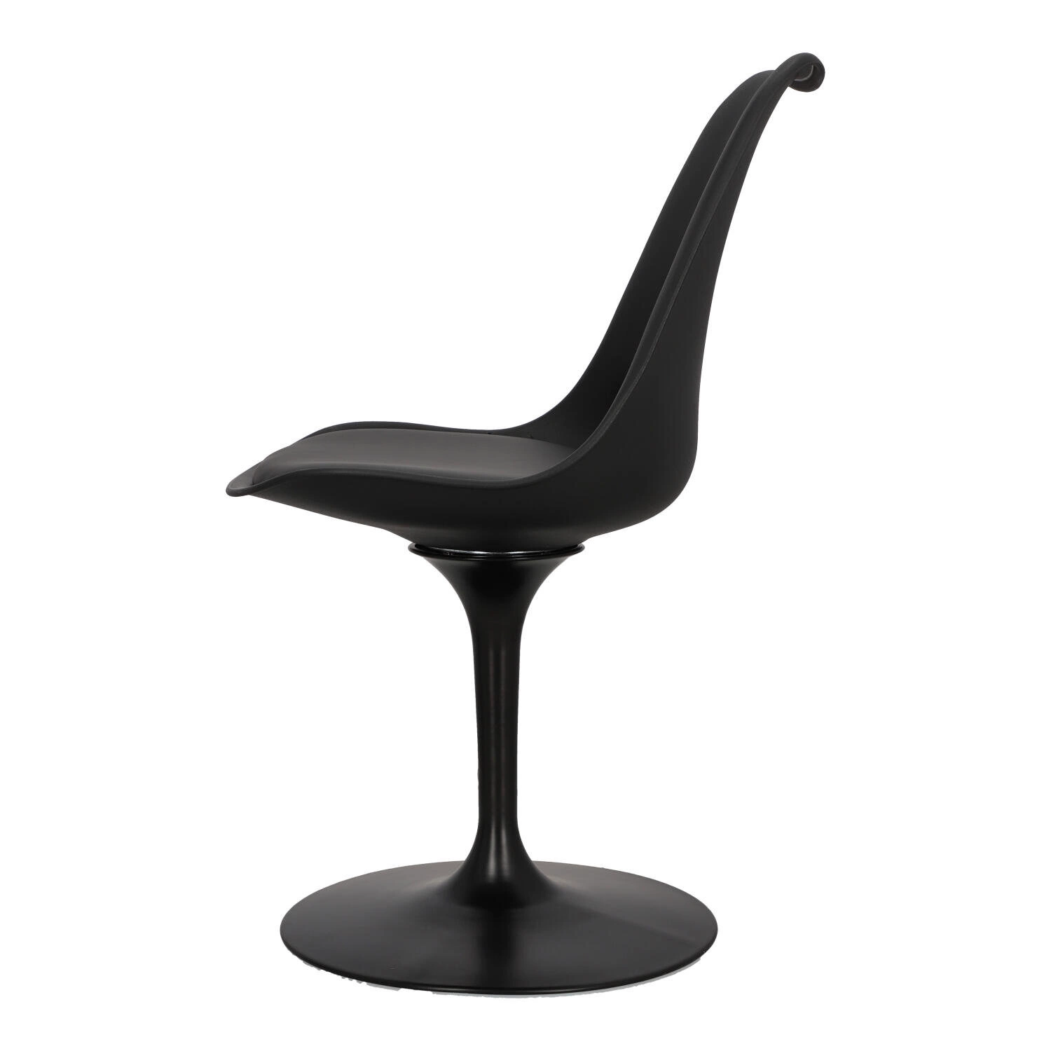Židle Tulip Basic je inspirován židlí Tulip, kterou v roce 1956 navrhl Eero Saarinen. Základna židle je vyrobena z plastu. Na podstavci je připevněn plastový sedák. Součástí dodávky je černý sedák. pr.Židle Tulip, křeslo Tulip a stůl Tulip tvoří rodinu výrobků navržených Eero Saarinenem, které se vyznačují základnami na jedné zužující se noze. Zde prezentovaný výrobek je inspirován designem židle Tulip. max. zatížení: 120 kg Hmotnost židle: max: vlastnosti výrobku: - oprýskaný lak na základně židle - oděrky na vnitřní straně sedáku