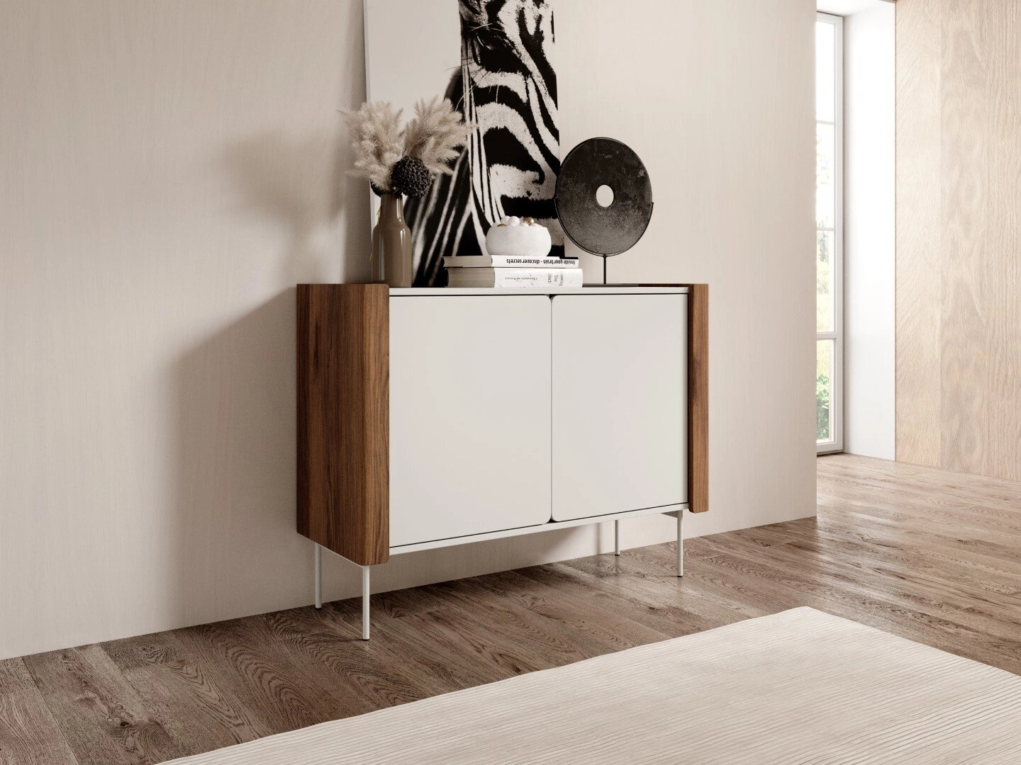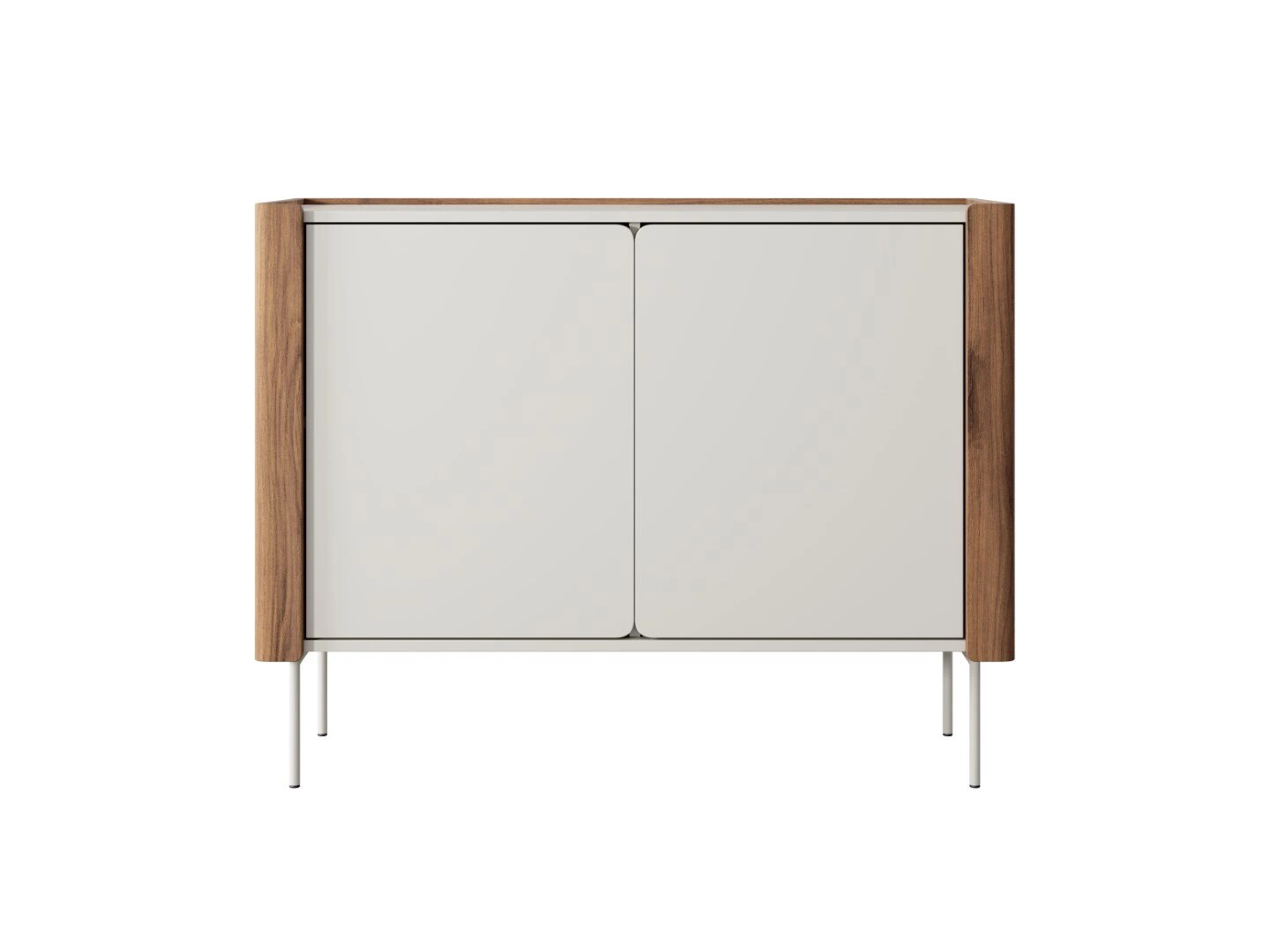 Díky šířce 105 cm a výšce 82 cm nabízí komoda Taberg optimální úložný prostor. Dvě uzavíratelné skříňky a praktická police umožňují přehledně uspořádat oblečení, textil, dokumenty nebo domácí drobnosti – vše, co chcete mít po ruce, ale schované mimo dohled. Je to ideální komoda se skříňkami do obývacího pokoje, ale také funkční komoda do ložnice, šatny či předsíně. Vysoké nohy umožňují snadné čištění pod nábytkem a dokonce i robotický vysavač se bez problémů dostane pod komodu.
