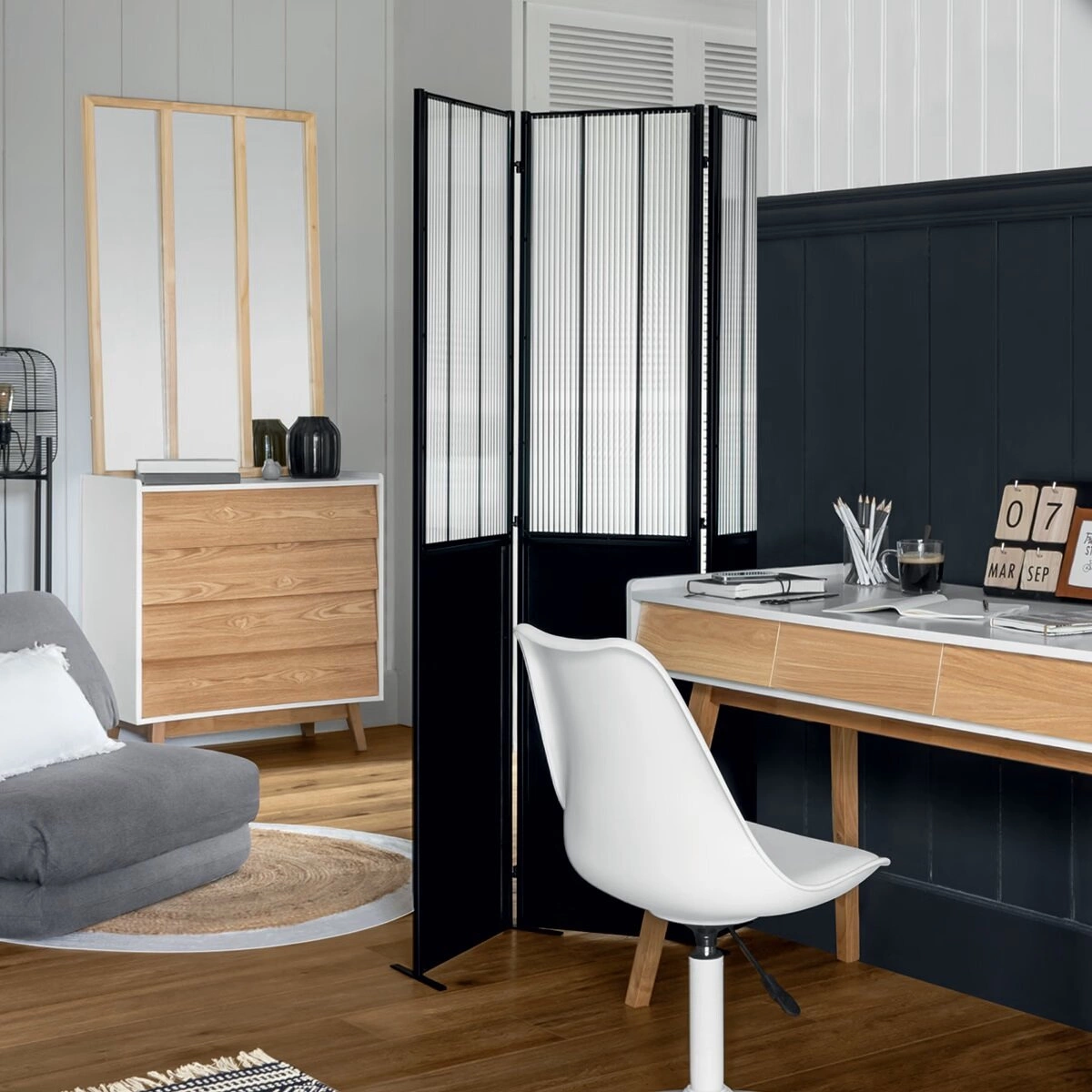 • Univerzální využití – ideální paraván do obýváku, ložnice, kanceláře nebo koupelny