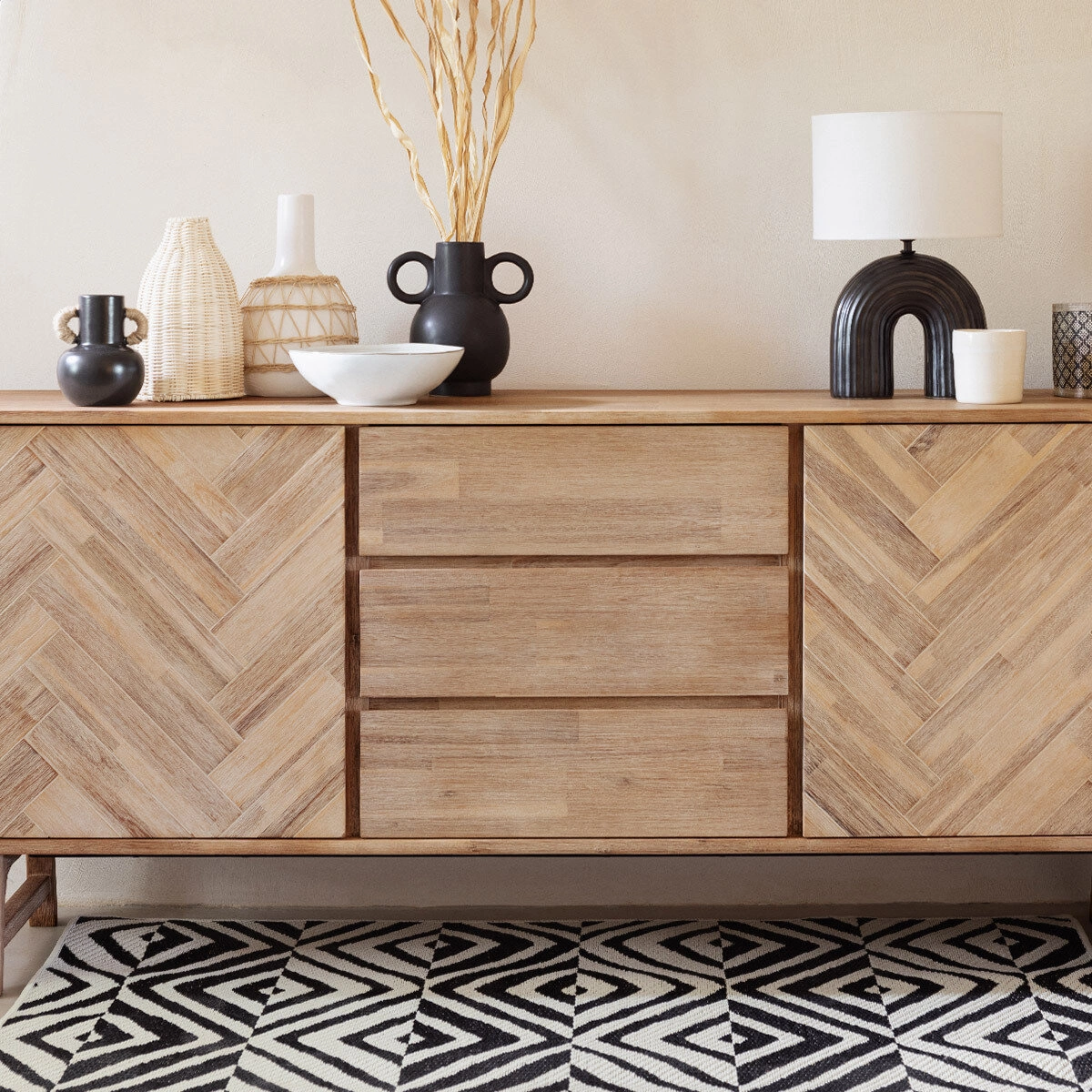 Komoda Aeris 180 cm dřevěná se zásuvkami skandinávský vzor rybí kost do obýváku Atmosphera