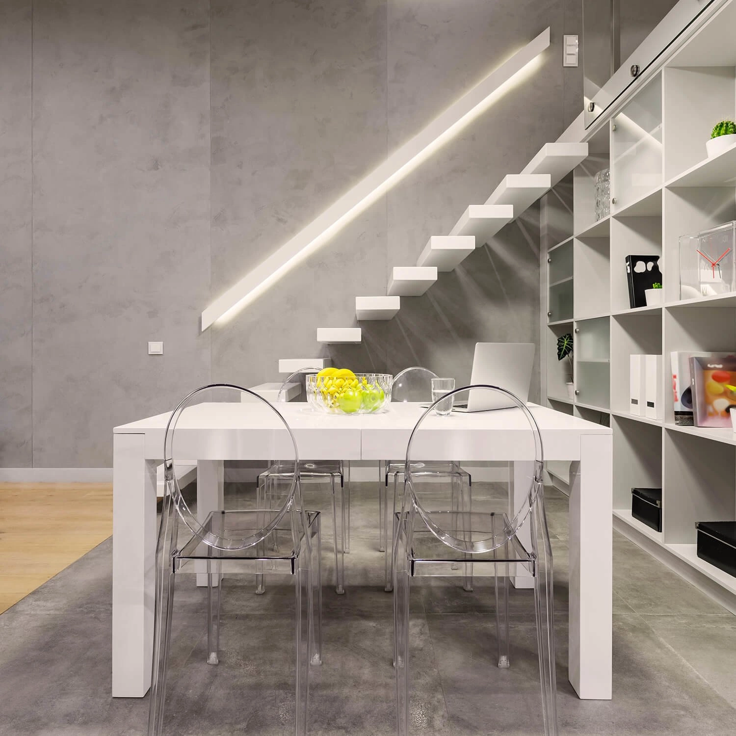 - Transparentní polykarbonát – opticky zvětšuje místnost a hodí se do každého stylu interiéru