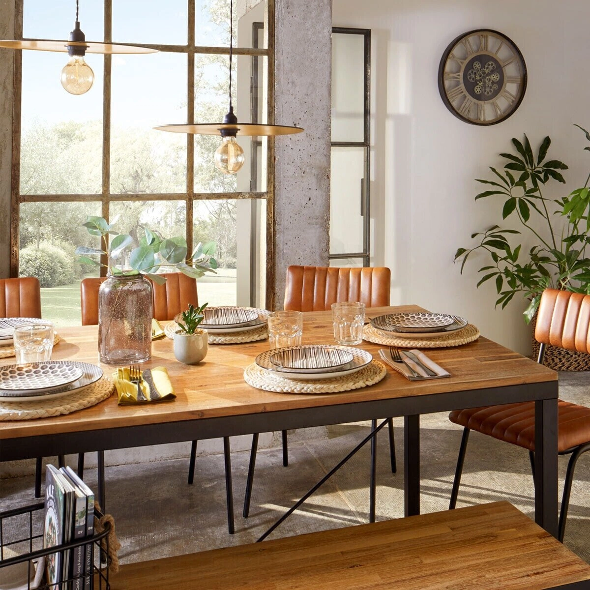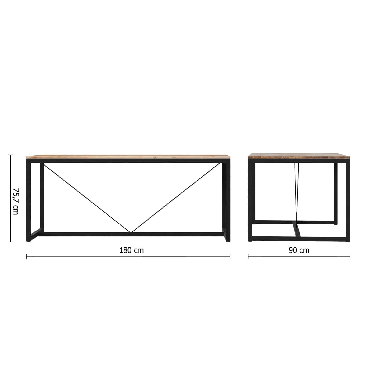 Jídelní stůl Edena od značky Atmosphera je moderní loftový nábytek o délce 180 cm, který zaujme matnou deskou z přírodního akáciového dřeva a robustními černými kovovými nohami na lyžinách. Díky univerzálnímu designu a odolným materiálům se stůl skvěle hodí do jídelny, obývacího pokoje, kuchyně, ale také do moderní restaurace či kavárny. Jeho obdélníkový tvar a vyvážená šířka 90 cm poskytují pohodlné místo pro 6–8 osob, takže Edena je ideálním středobodem každodenního stolování i rodinných setkání.