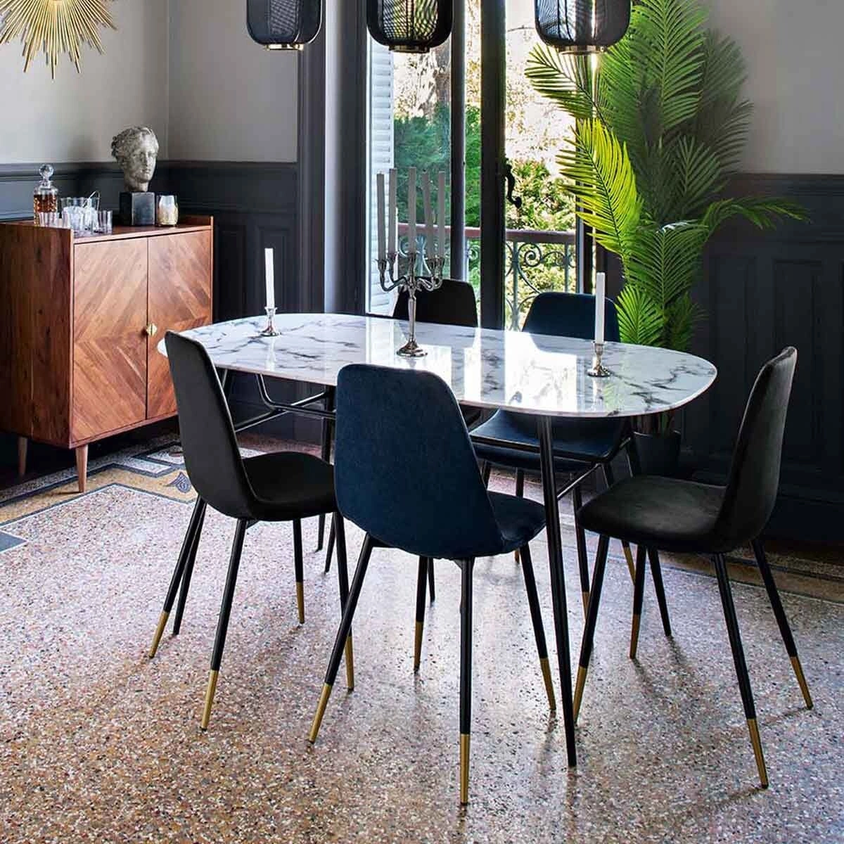 Roxas od Atmosphera je volbou pro ty, kteří hledají moderní, nerozkládací stůl s nadčasovou elegancí mramoru. Perfektní pro každodenní stolování i slavnostní příležitosti, tento stůl vám poskytne pohodlí i styl na dlouhá léta. Poznejte rozdíl, který přináší moderní stůl s mramorovou deskou na černých nohách do vašeho domova – vyberte si Roxas a vytvořte jídelnu, která vás okouzlí každý den.