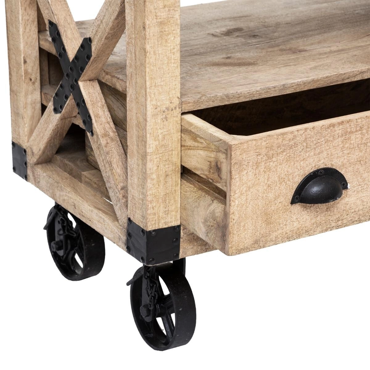 - Mangové dřevo a kovový podstavec – spojení odolnosti s originálním designem