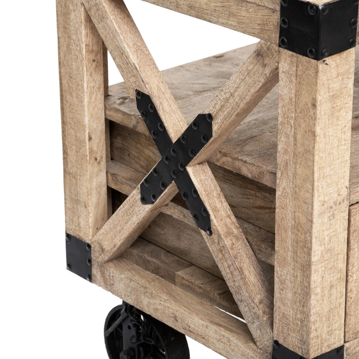 TV skříňka Silas zaujme ručně dokončeným povrchem z mangového dřeva, který krásně zvýrazňuje přirozenou kresbu a strukturu čela. Patinovaný efekt a jemný, přírodní odstín manga dodávají teplo a originální charakter. Černé kovové detaily vnášejí do interiéru moderní industriální vzhled, zatímco jednoduché linie perfektně ladí s aktuálními trendy v bydlení. Tento model je ideální volbou pro ty, kdo hledají TV stolek z masivu, který spojuje odolnost přírodního dřeva s designovým zpracováním.