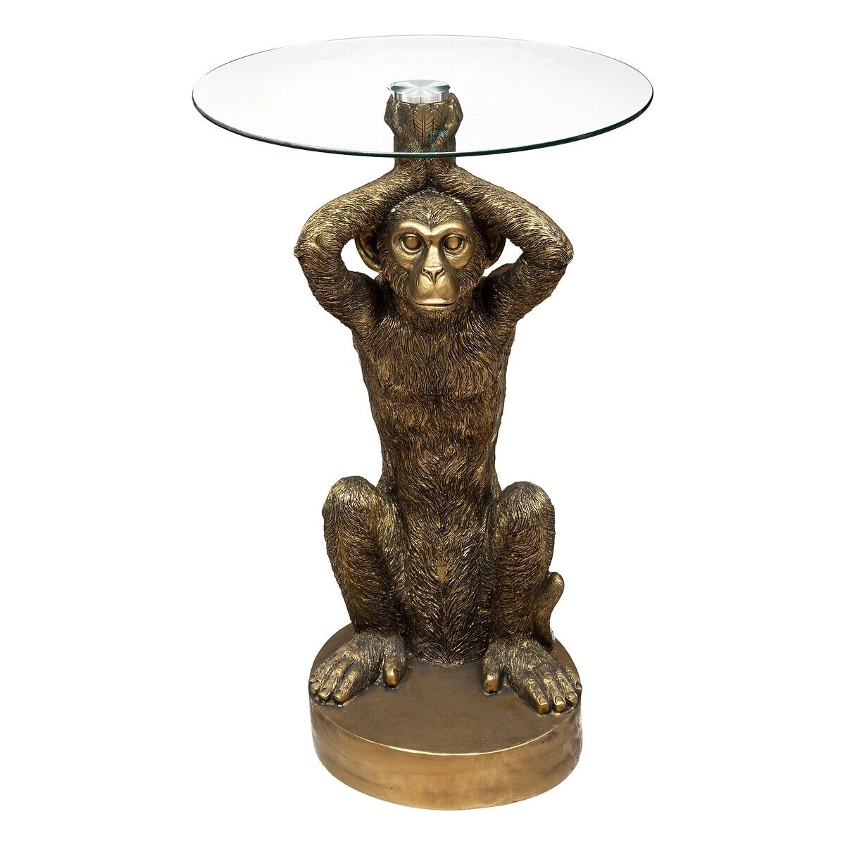 Konferenční stolek Monkey od značky Atmosphera je stylová volba, která v sobě spojuje originální design, kvalitní materiály a praktičnost. Kulatá deska o průměru 40 cm je vyrobena z tvrzeného skla, stabilní podstavec ve zlaté barvě a nápaditá forma zaručují, že tento moderní konferenční stolek skvěle zapadne do obývacího pokoje, ložnice nebo elegantní jídelny. Je to ideální volba pro ty, kdo oceňují luxusní a zároveň funkční nábytek do domácnosti.Objevte detailně – originální design a kvalitní materiály