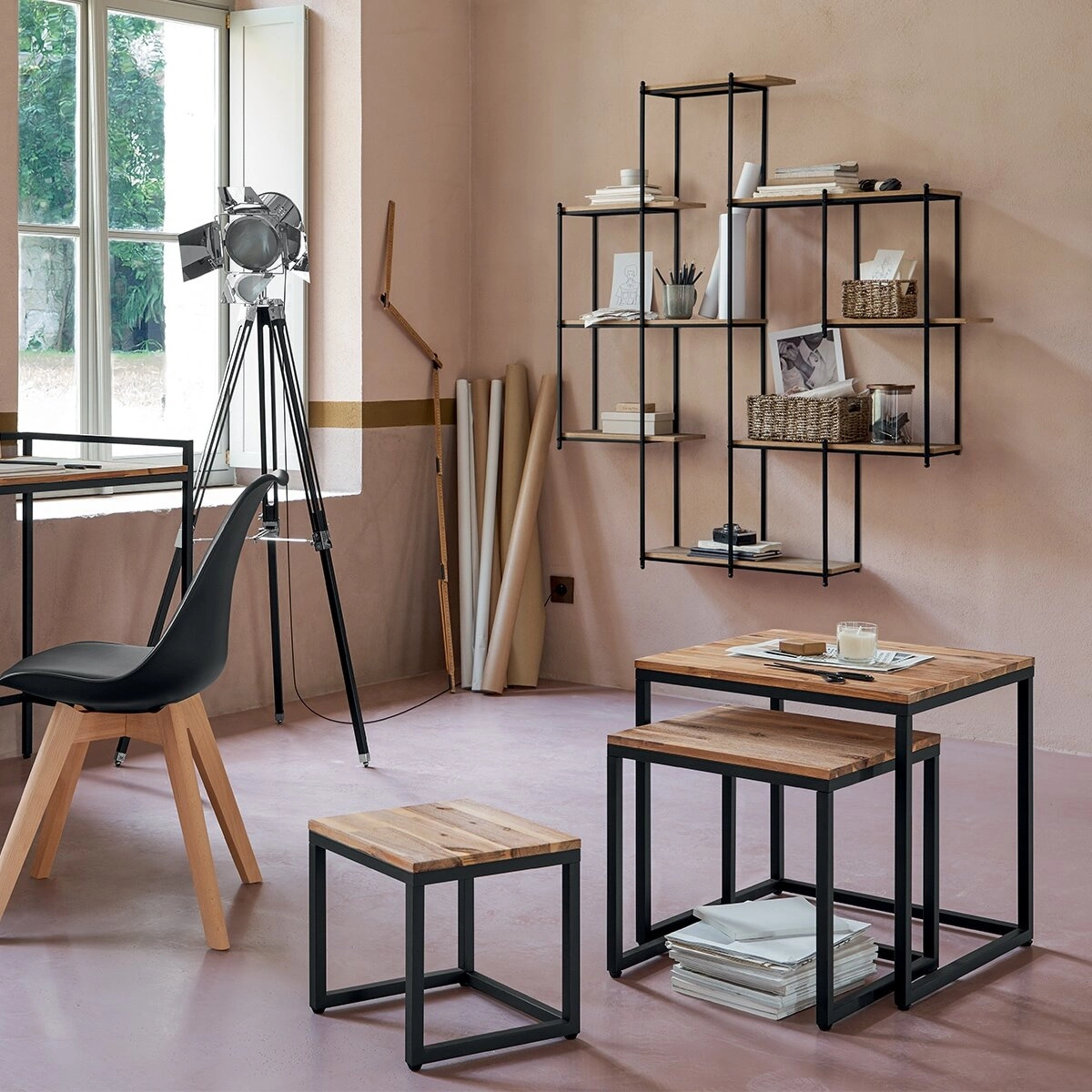 Sada 3 čtvercových konferenčních stolků Edena dřevo-kov loft do obýváku Atmosphera
