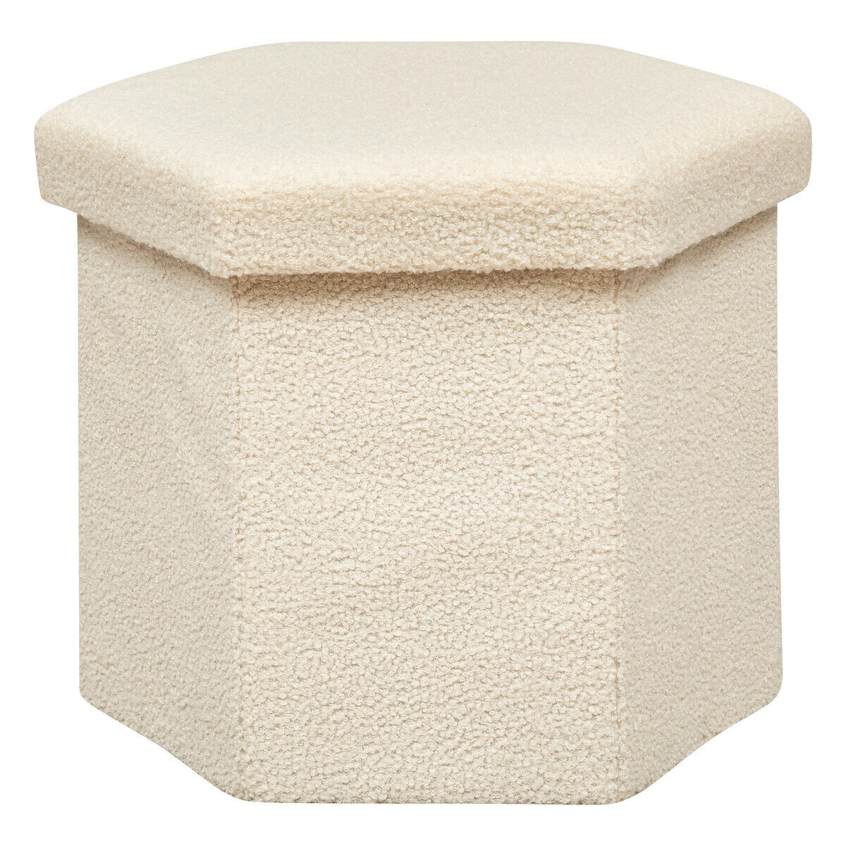 Pufa Jaiko boucle béžová od značky Atmosphera je moderní, funkční čalouněný nábytek z příjemné bouclé látky na dotek. Šestiúhelníkový tvar, možnost složení a prostorný úložný prostor (až 72 litrů) zaručují, že tento model skvěle zapadne jak do obývacího pokoje, tak i do předsíně nebo ložnice. Díky kompaktním rozměrům – výška 38 cm, šířka a hloubka 40 cm – je pufa ideální jako pohodlné sezení i praktické místo pro ukládání věcí.